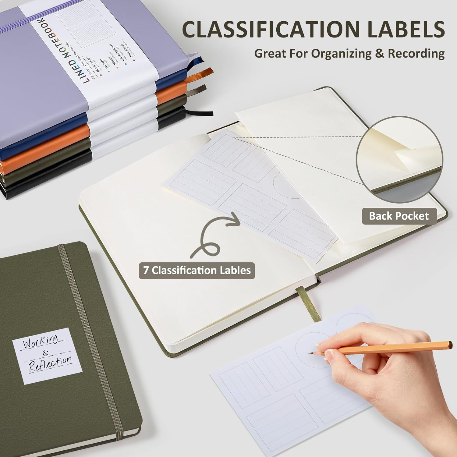 - 180° Lay Flat Design:The 180° lay-flat design ensures effortless writing at any angle, allowing seamless use of both pages. The A5 college ruled journal Notebook eliminates awkward angles and enhances the overall writing experience, adapting smoothly to any writing surface.The back cover of the notebook journal includes an expandable pocket to store small objects. The elastic band on the outside of the lined notebook can also help you fix and mark pages perfectly.
