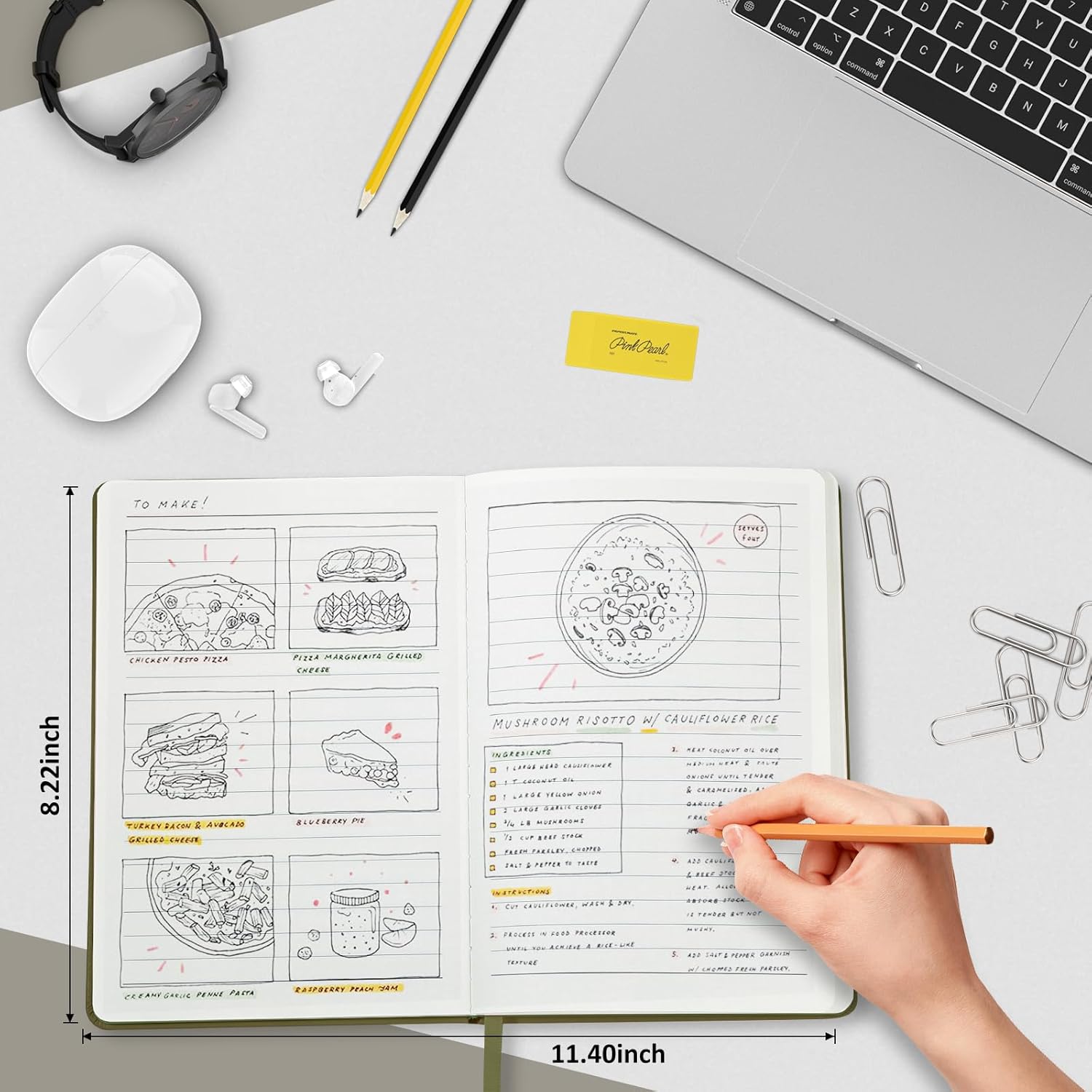 - 100 GSM Thick Notebook Journal: This notebook provides generous 200 pages for long-term use, reducing the need for multiple notebooks. Features high-quality 100 GSM thick, acid-free, ivory paper that prevents ink bleed-through and ghosting, ensures a smooth writing experience, and is gentle on eyes with 8mm college ruled lines. Works great with all pen types.