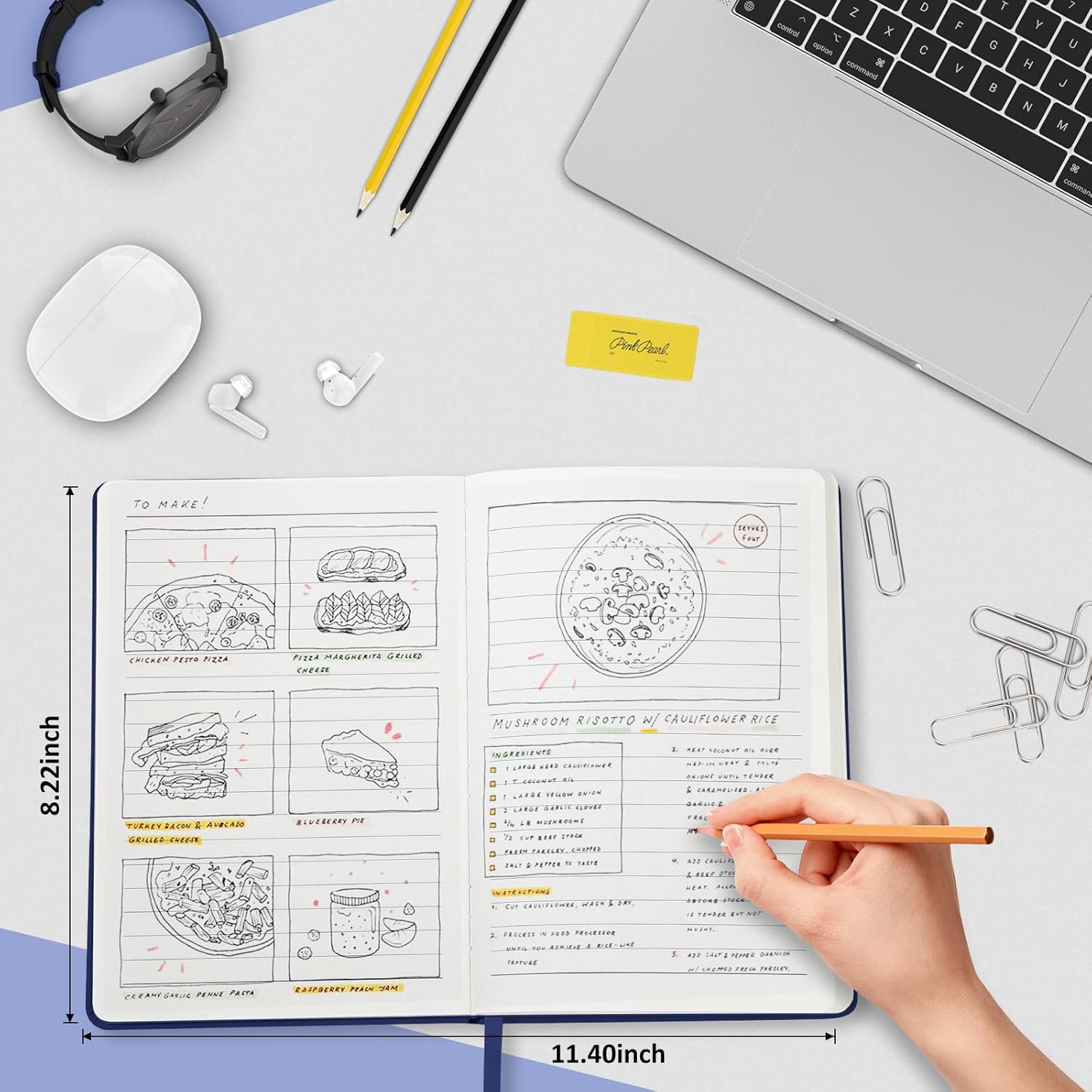 - 100 GSM Thick Notebook Journal: This notebook provides generous 200 pages for long-term use, reducing the need for multiple notebooks. Features high-quality 100 GSM thick, acid-free, ivory paper that prevents ink bleed-through and ghosting, ensures a smooth writing experience, and is gentle on eyes with 8mm college ruled lines. Works great with all pen types.