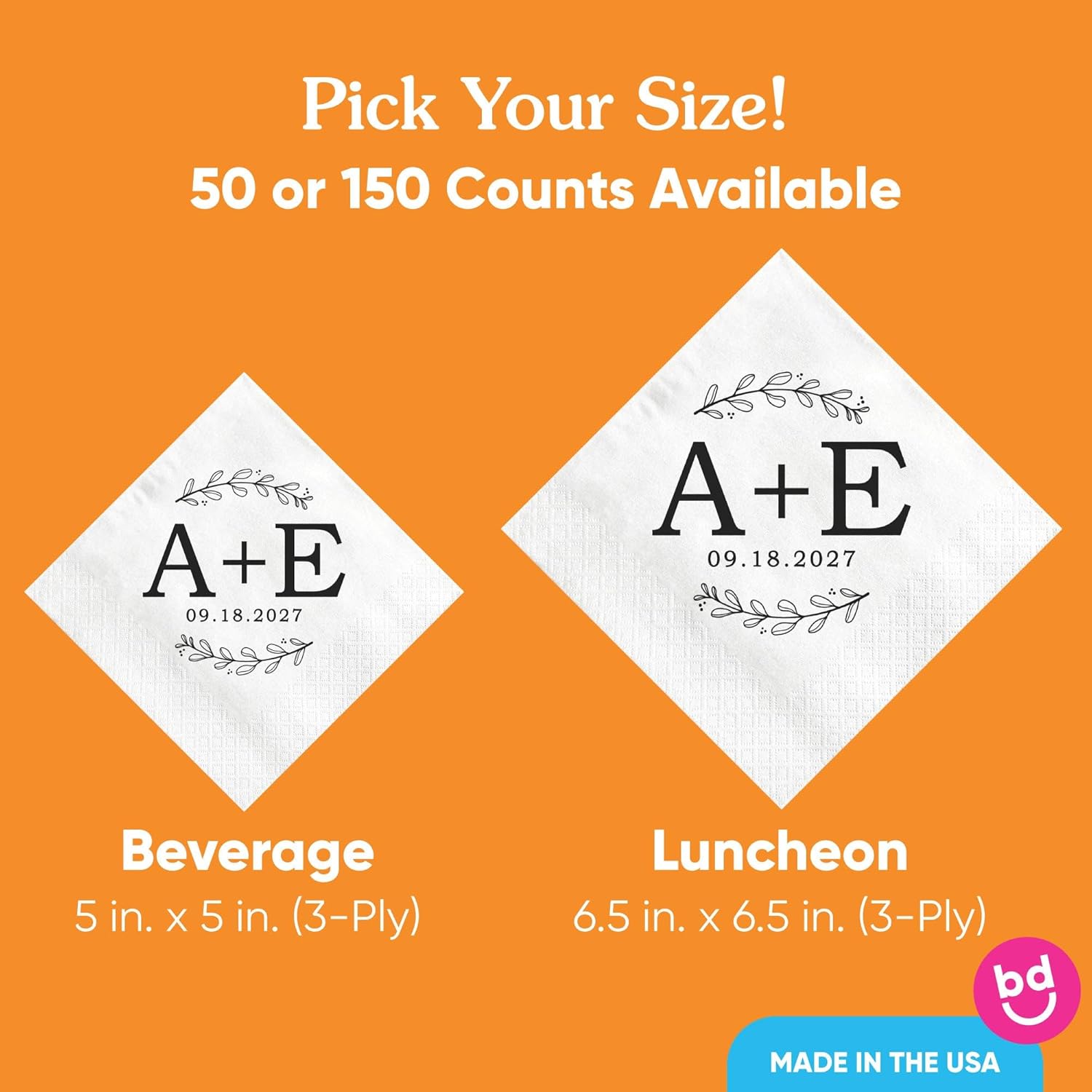 - Premium Paper Napkins: Each napkin is printed on white, soft, 3-ply paper with a one-sided full-color design that’s absorbent, vibrant, and durable enough for your most important moments.