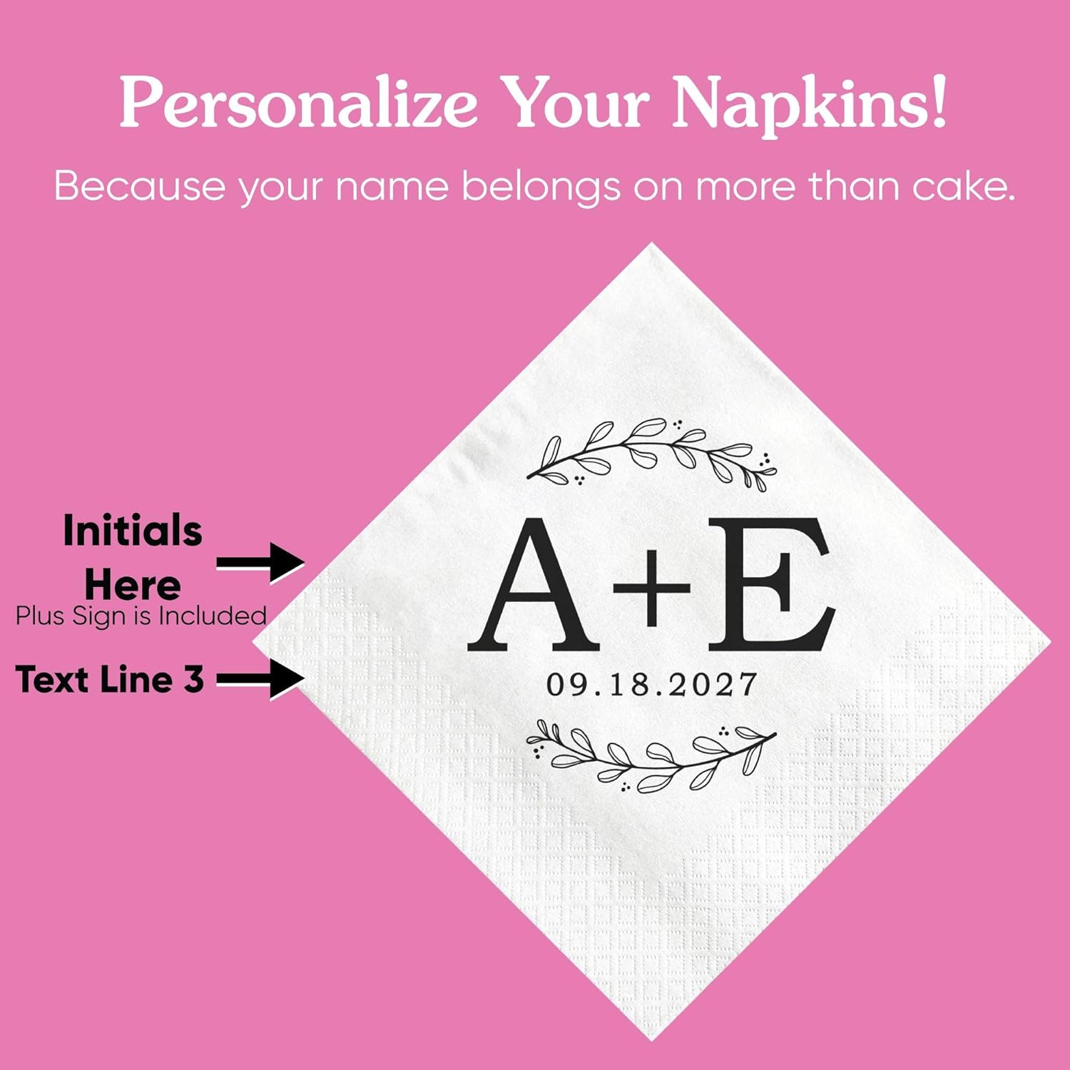 - Personalized Wedding Napkins: Elevate your celebration with custom Rustic Leaves Monogram cocktail napkins or dinner napkins—available in beverage (5" x 5") and luncheon (6.5" x 6.5") sizes. Whether it’s a wedding reception, bridal shower, engagement party, or anniversary dinner, these personalized napkins add a thoughtful, decorative touch to your table. Click “Customize Now” to add names, dates, or a special message.