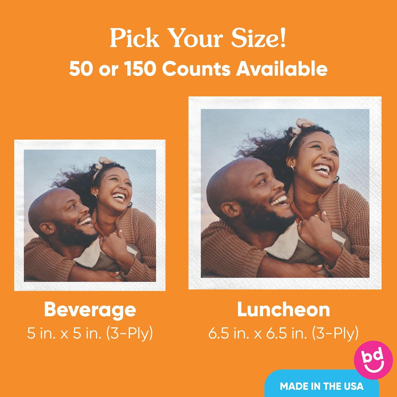 Big Dot of Happiness Custom Photo Party Napkins, Personalized Engagement, Wedding, Graduation, Birthday Decor, White 3-Ply Paper Beverage Napkins - 50 Count