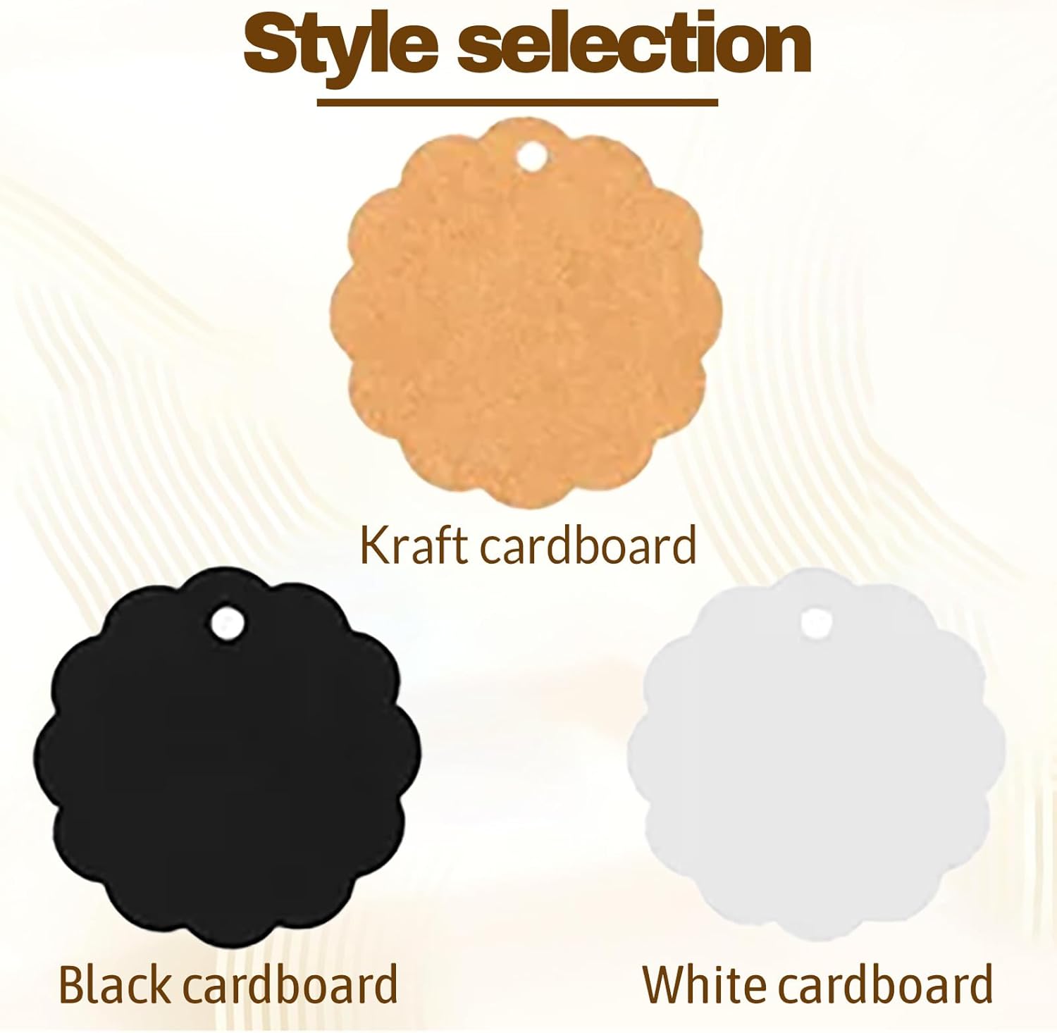 - Custom Tag Paper: Available in three color backgrounds: brown kraft paper, white and black cardstock, can be used as clothing labels with your logo, thank you labels, party decoration paper gift tag
