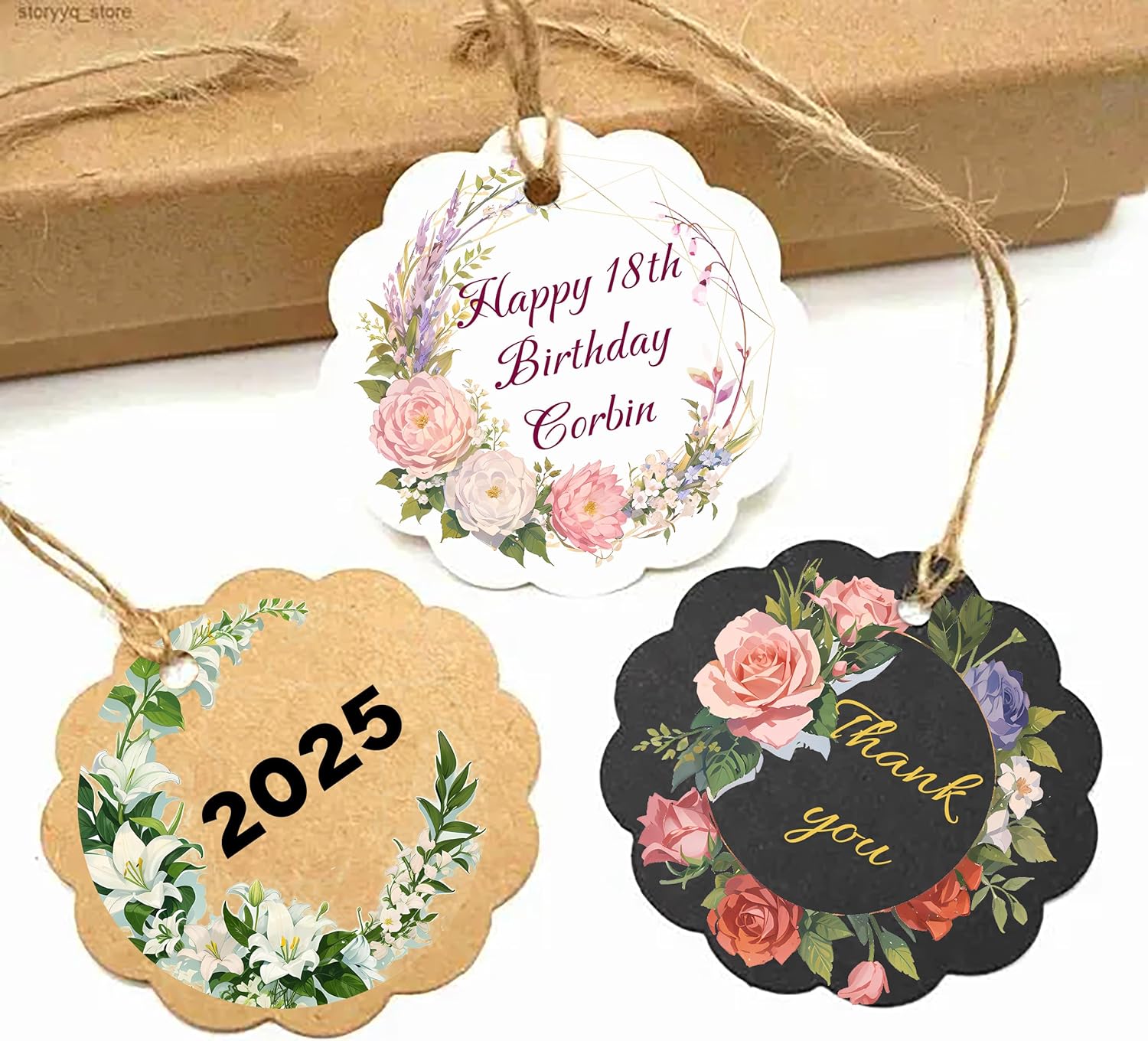 Personalized Gift Tags with String Custom Hang Tags with Your Logo/Text Small Card Party Decoration Paper Gift Tags for Birthday Wedding Christmas