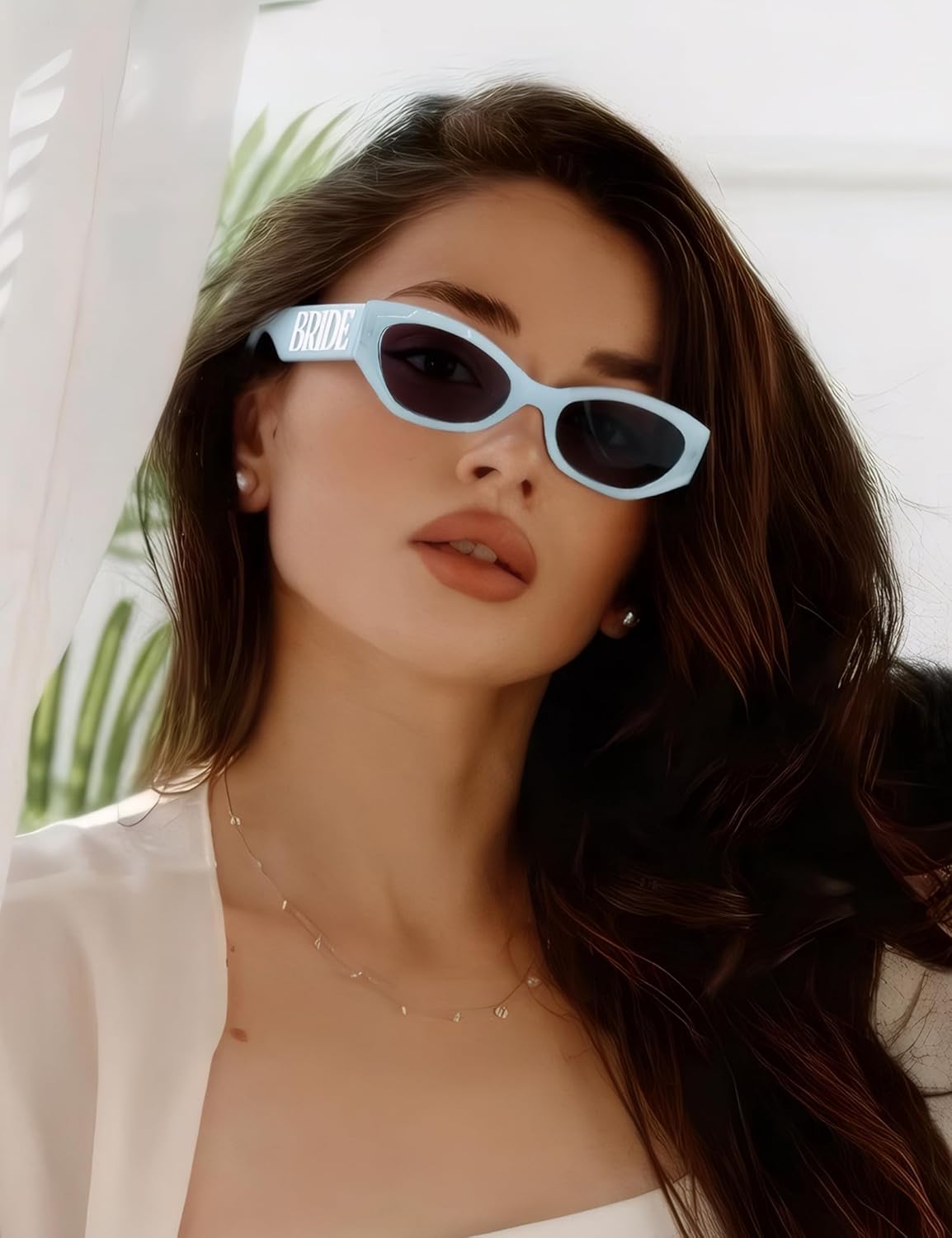 - 【VERSATILE AND GLAMOROUS】Blue white bride sunglasses double as stylish essentials for poolside bashes, engagement photos, or honeymoon adventures. Stylish bridal accessories for the bride adding a touch of elegance to every special moment