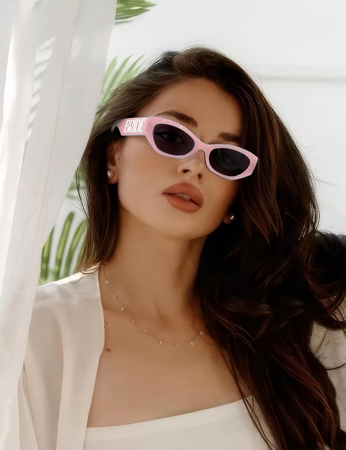 - 【VERSATILE AND GLAMOROUS】Pink white bride sunglasses double as stylish essentials for poolside bashes, engagement photos, or honeymoon adventures. Stylish bridal accessories for the bride adding a touch of elegance to every special moment