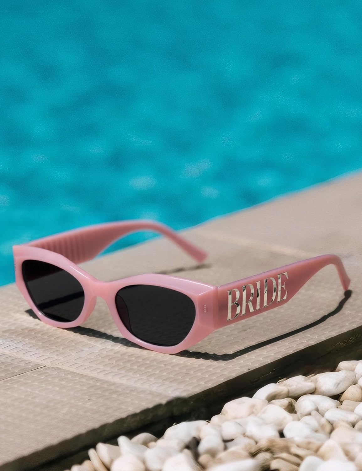 - 【ENHANCE YOUR BRIDAL LOOK】Pink bride sunglasses features a chic pink marble frame and bold "BRIDE" logos on both temples. Bride sunglasses for bachelorette party ensures you shine with stunning, photo-ready style from every angle