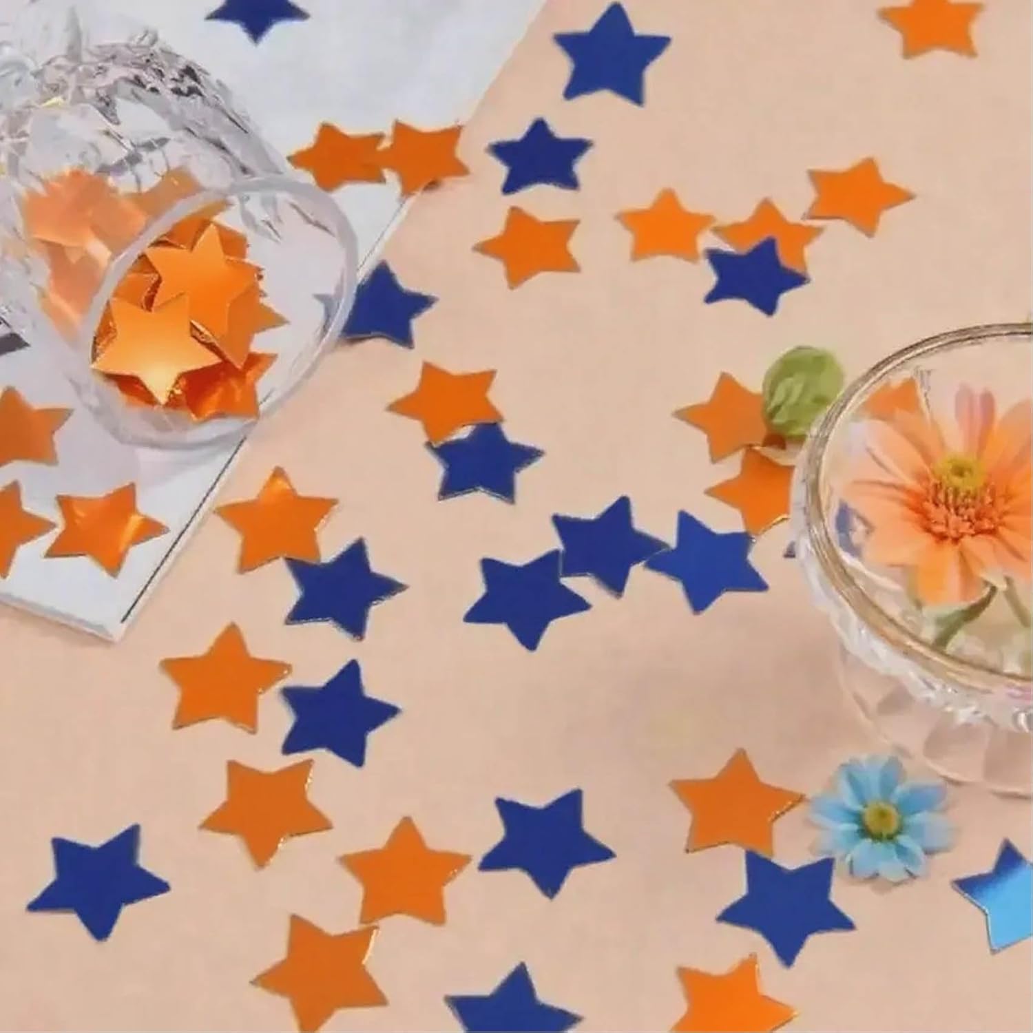Orange Blue Metallic Foil Star Confetti 0.78inch/2cm 8000Pcs Table Confetti for Party Birthday Decoration or Filled Balloons