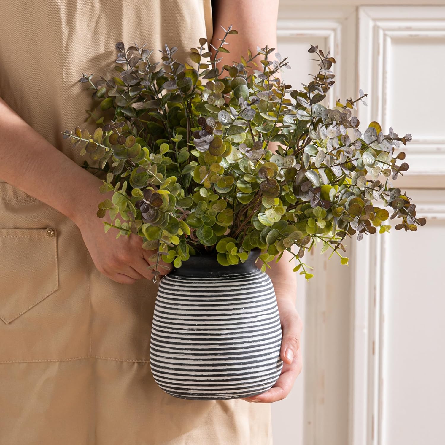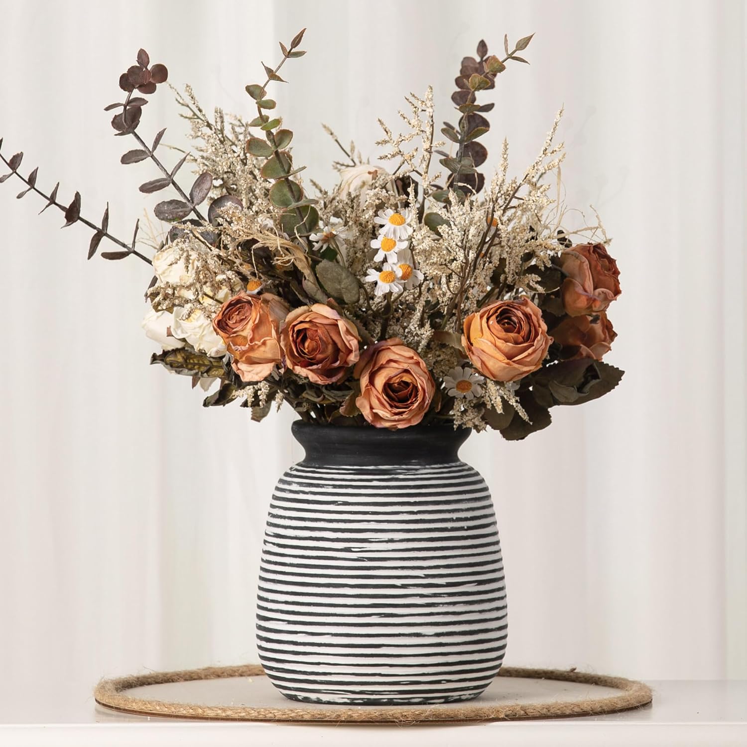 - Ceramic Vase Home Decor --- More than a vase for flower, this ceramic vase can as utensil holder or wonderful home décor, as its 100% hand-painted surface makes each vase unique.This vase is perfect forarranging artificial plants, pampas grass or fresh flowers and plants, can be arranged individually or in combination, as a room decor, home decor, living room decor, farmhouse decor, table decor, bookshelf decor,entryway decor, kitchen decor, boho decor, house decor, office decor,shelf decor and more.
