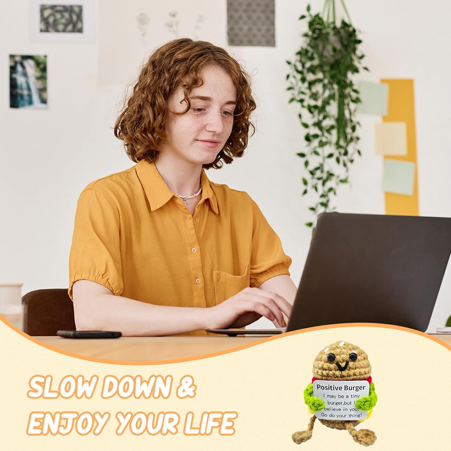 - 【Cheerful Crochet Friend】This handcrafted doll radiates positivity,offering comfort and joy in everyday life.Its uplifting presence reminds you to focus on the bright side,helping you stay hopeful and resilient during tough times.A little companion that strengthens the heart with warmth and optimism