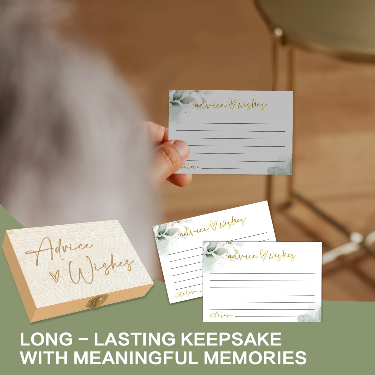 Watercolor Advice and Wishes Cards with Box - 50 Pcs Eucalyptus Advice Cards for Wedding, Bridal Shower, Baby Shower, Well Wishes Box for Graduation, Christmas, Birthday Party Decorations -A05
