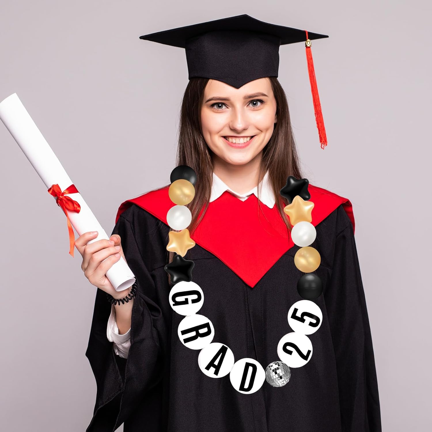 Giant Friendship Bracelet Garland Kit, DIY Birthday Banner with Letters Ball Jumbo Customizable Friendship Bracelet Decor for Halloween Christmas Wedding Party(Black, Gold, White)