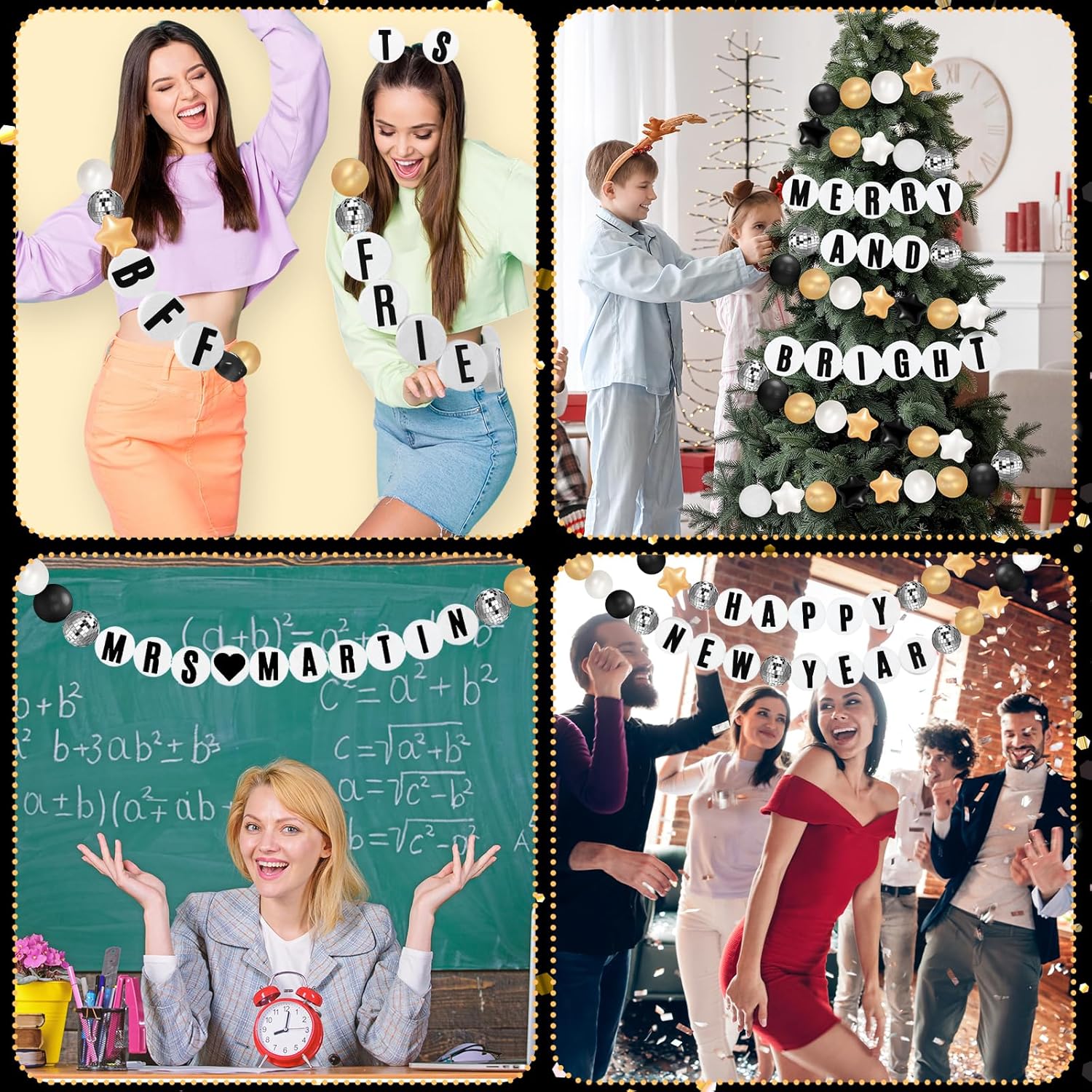 - Easy DIY: stick the letter stickers on the foam circle to form the word combination you want, tie the fishing line to the embroidery needle, and then pass through the disco ball, foam circle, and ball in turn, you can easily create any banner; No need to buy separate custom banners