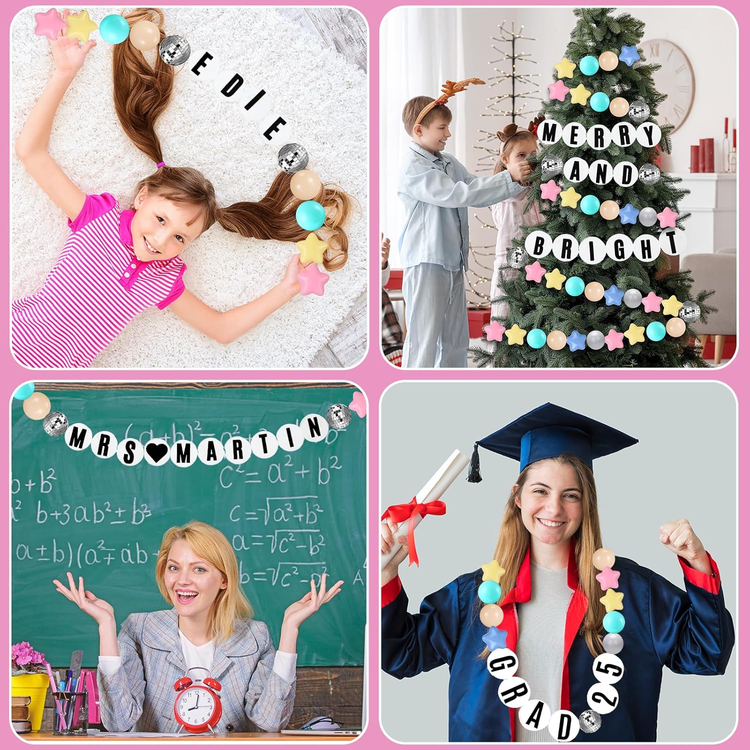 - Easy DIY: stick the letter stickers on the foam circle to form the word combination you want, tie the fishing line to the embroidery needle, and then pass through the disco ball, foam circle, and ball in turn, you can easily create any banner; No need to buy separate custom banners
