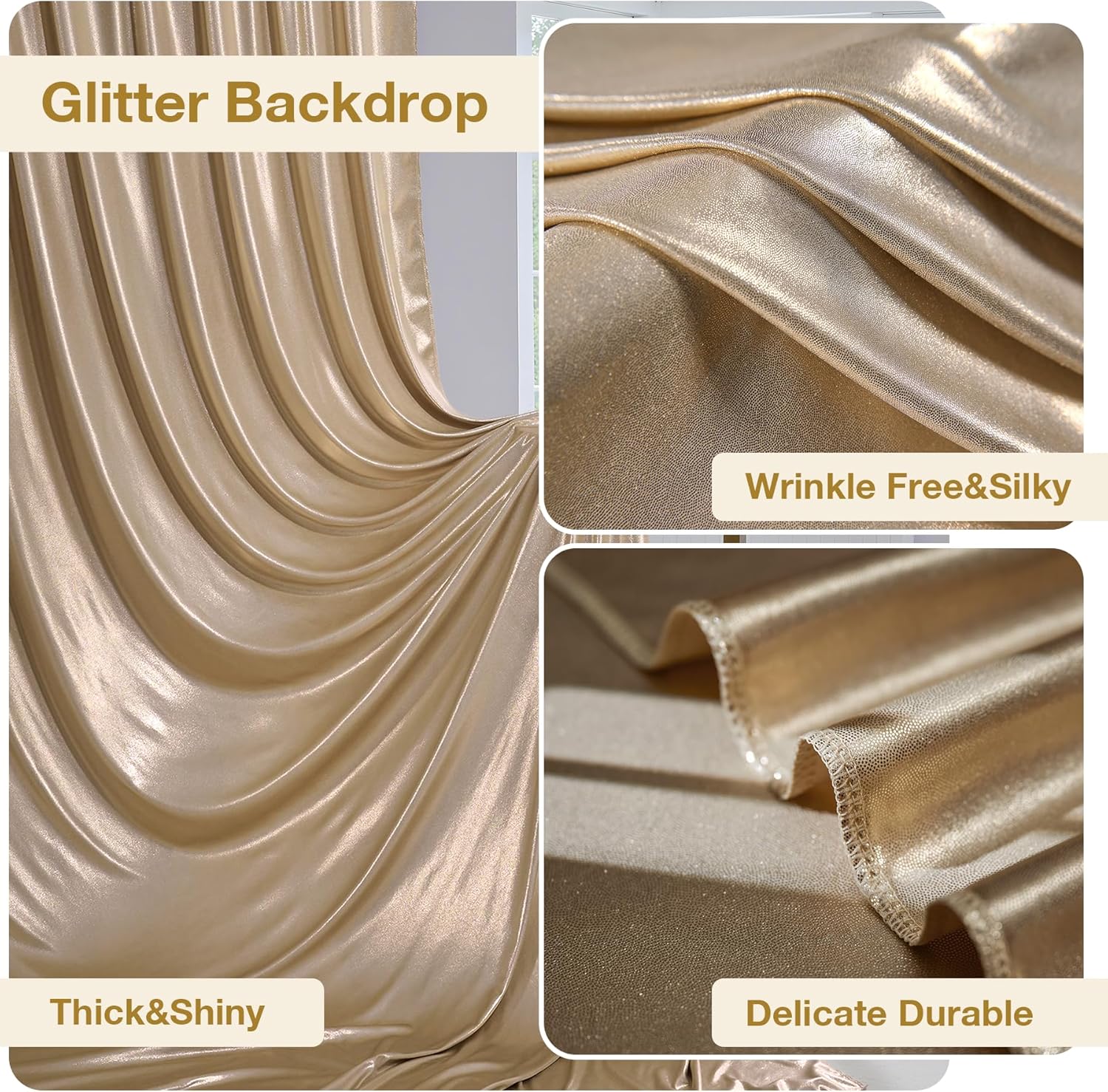 - Wrinkle Free & Non See Through Champagne Drapes for Backdrop - Made of premium polyester fabric as the backing, wrinkle free, Silky Touch Feeling, Drape Nicely; Dual Design make the champagne drapes for backdrop 10 ft not see through at all, perfect for any events gold sequin drapes