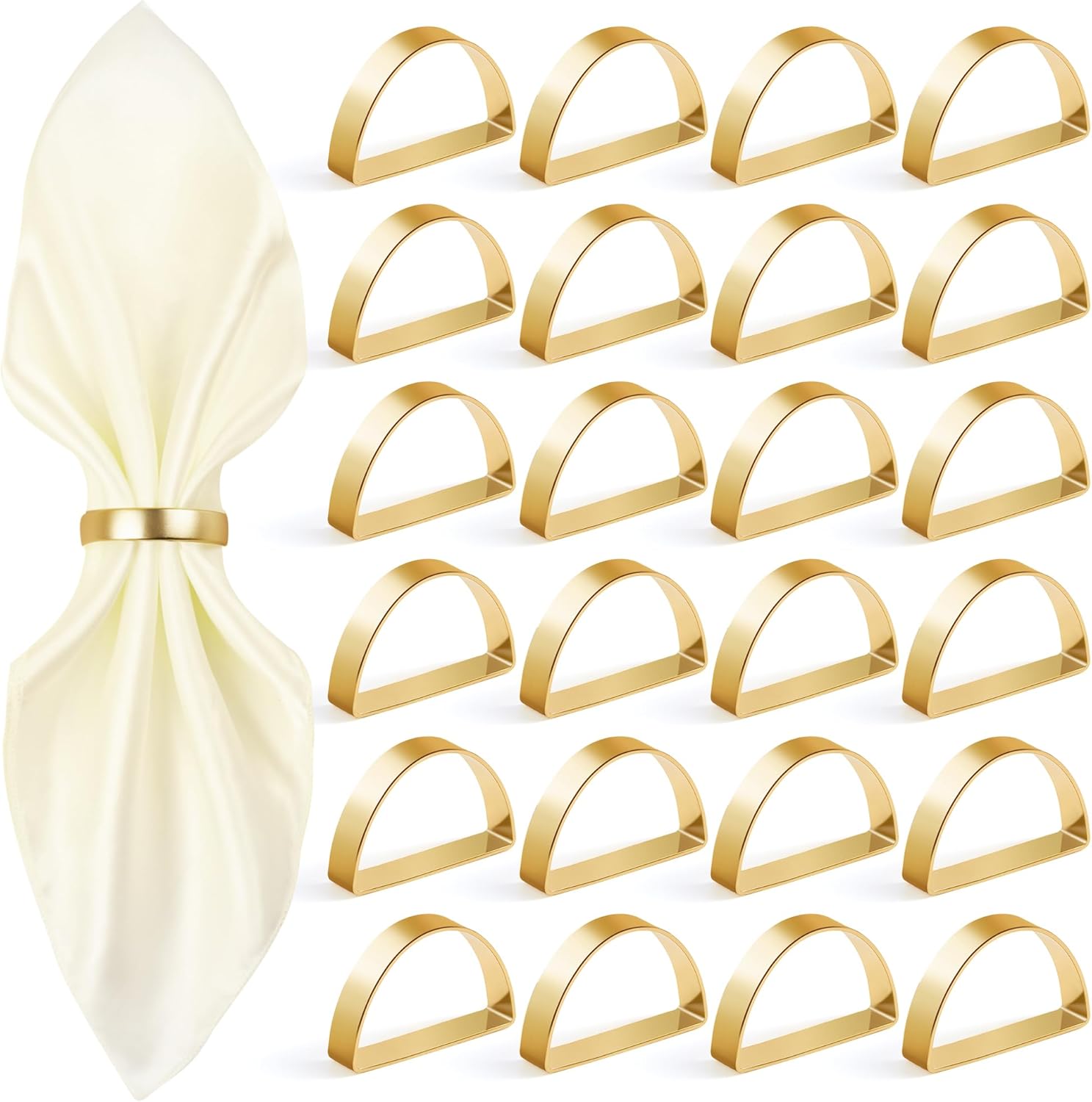 Gold Napkin Rings Set of 24, Stainless Steel Metal Gold Napkin Holder, Fall Thanksgiving Christmas Easter Napkins Rings for Table Decor Wedding, Banquet, Party