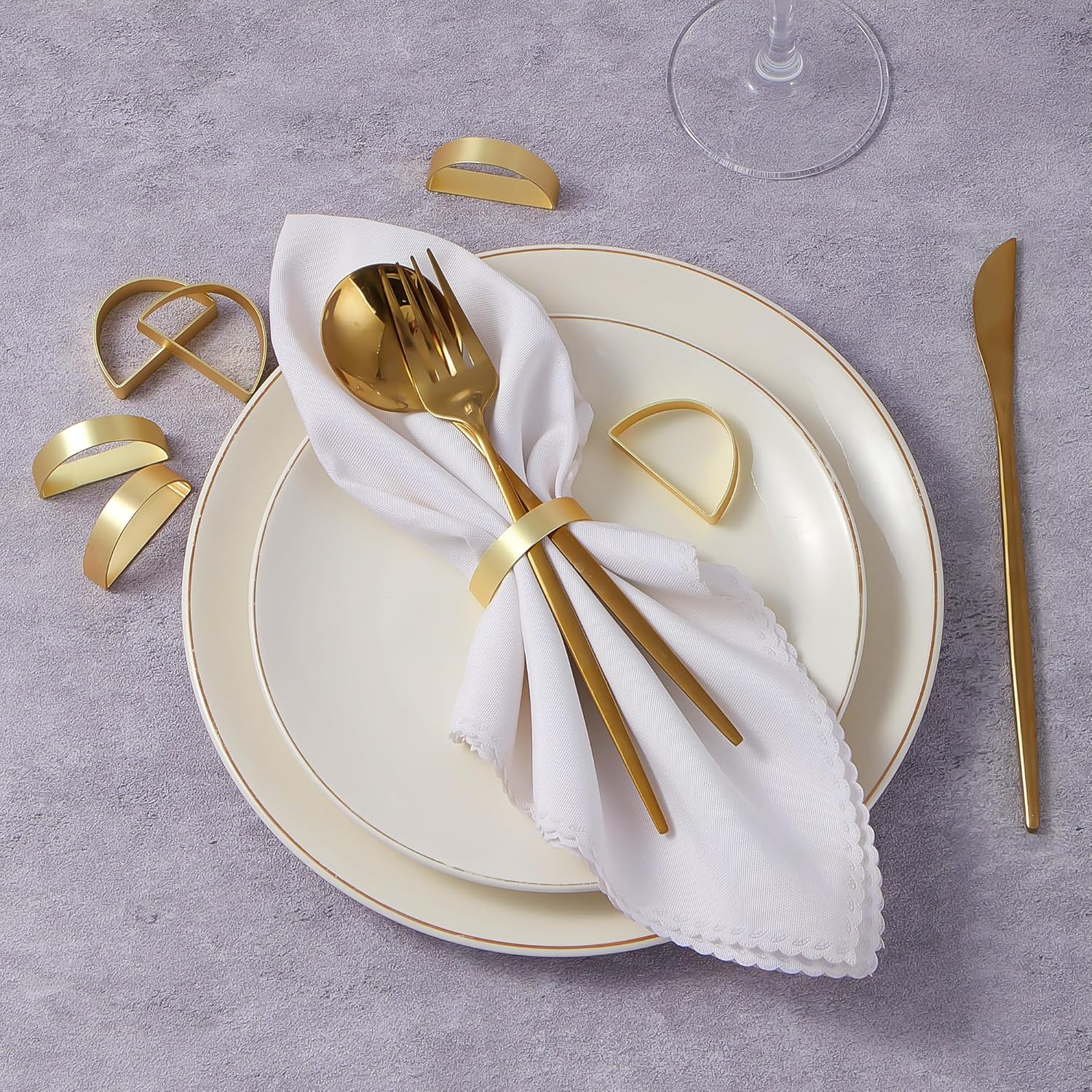 - 【SIMPLE & PRACTICAL】The gold napkin rings feature a simple open-close design, allowing for easy and quick use. Simply roll up your napkin and slide the napkin ring over it, providing a neat and organized presentation. These napkin rings are not limited to formal dinners or holiday gatherings but can also be used for daily dining and various special occasions.