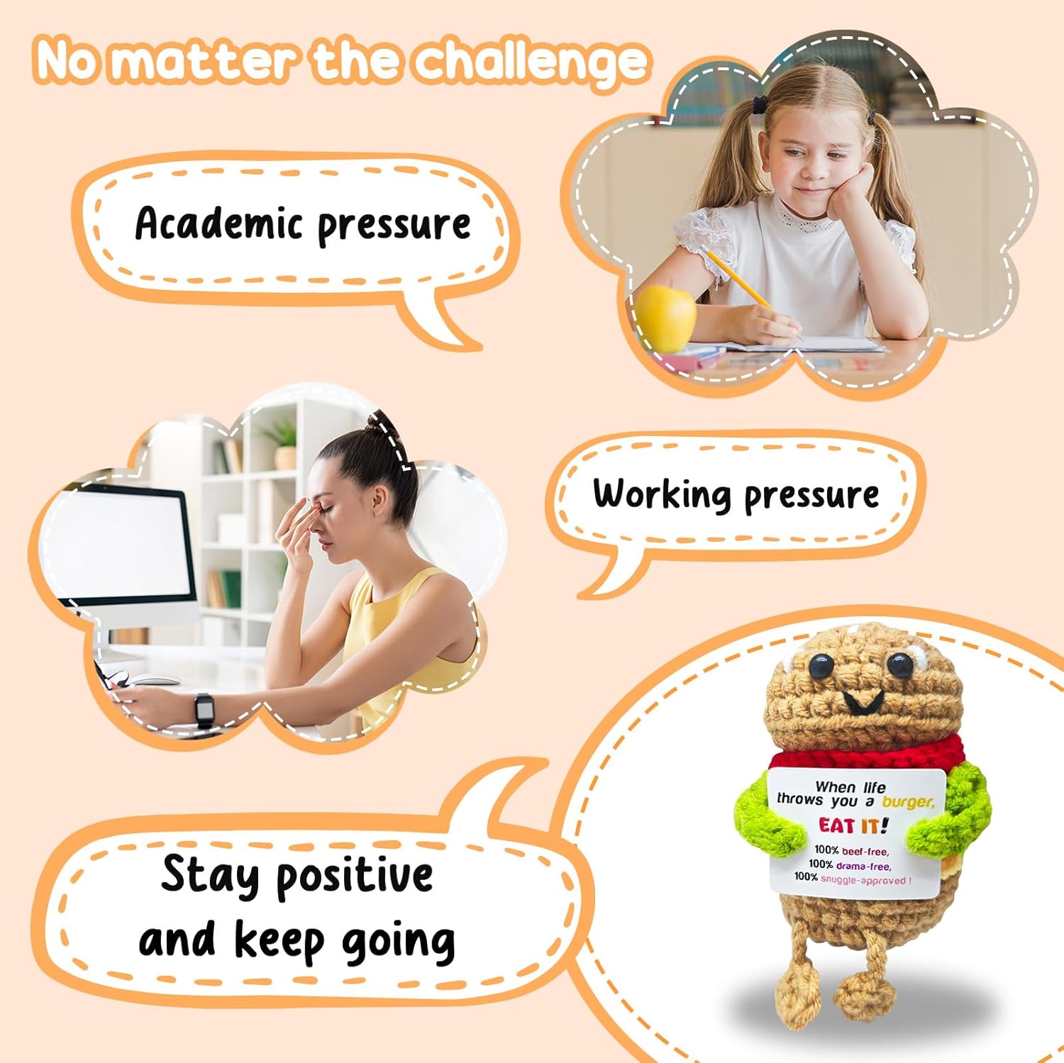 Funny Handmade Hamburger Gift-Unique Cute Presents for Women & Men,Emotional Cheer Support,Birthday Gifts for Her/Him,Friends,Coworkers,Family