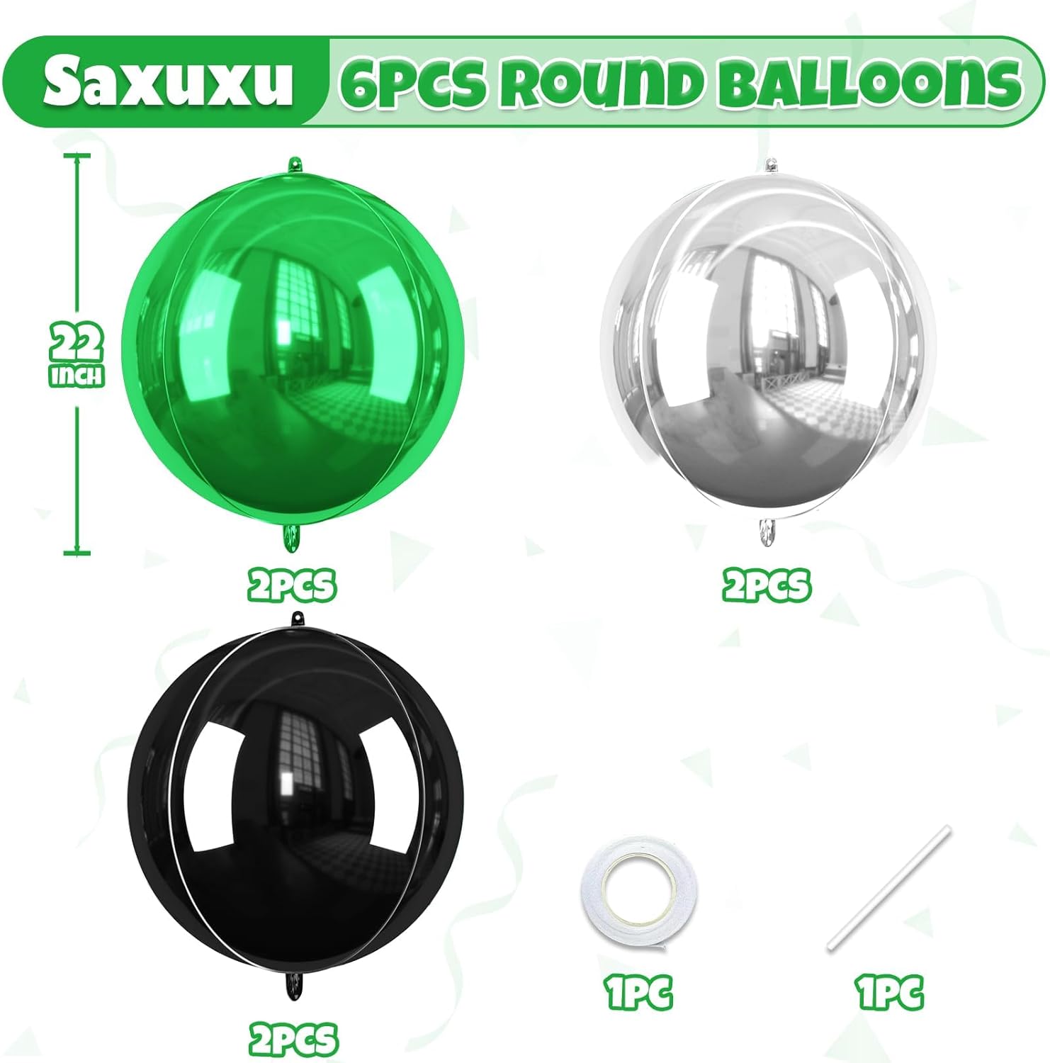 - Package Contains β 6 pcs 22-inch green silver and black round foil balloons, 1 pc straw and 1 pc ribbon. These large, eye-catching balloons are perfect for elevating your party decor with a bold and stylish touch.