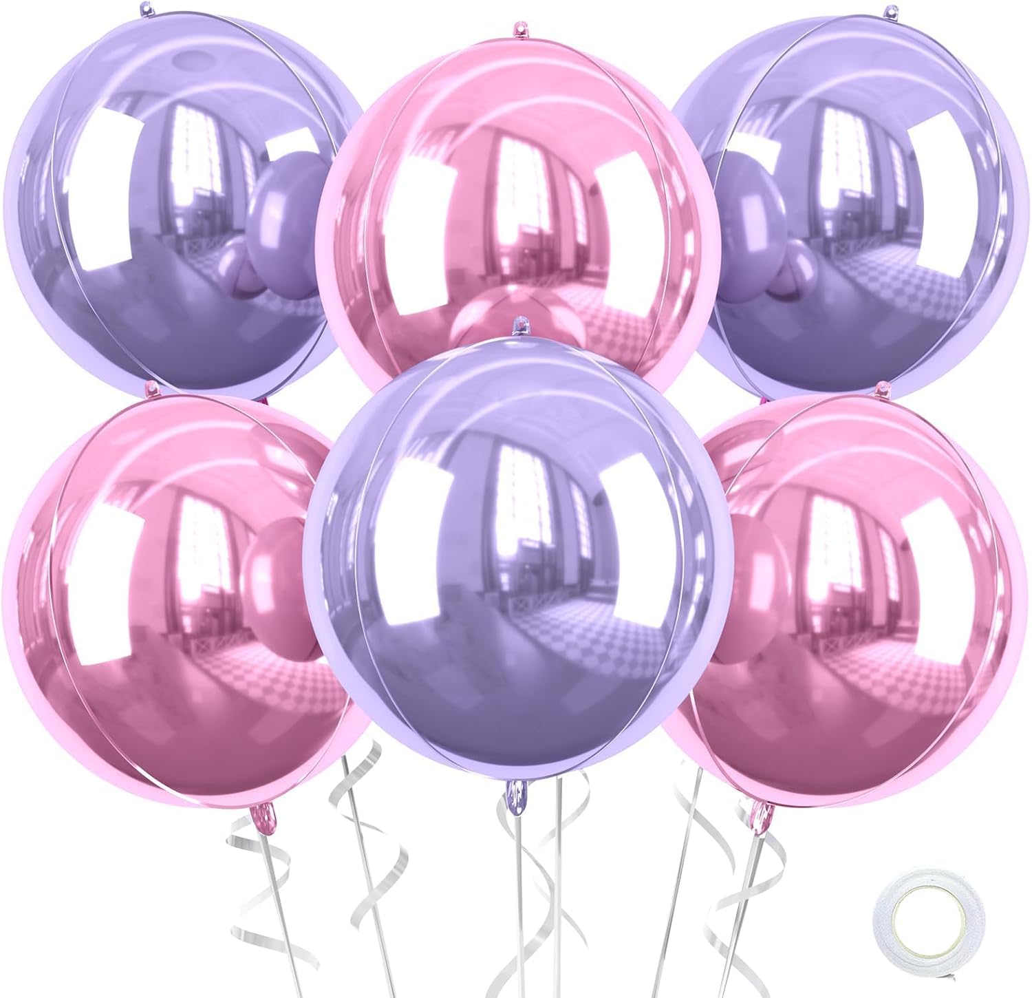 - Package Contains β 6 pcs 22-inch pink and purple round 4D foil balloons, 1 pc straw and 1 pc ribbon. These large, eye-catching balloons are perfect for elevating your party decor with a bold and stylish touch.