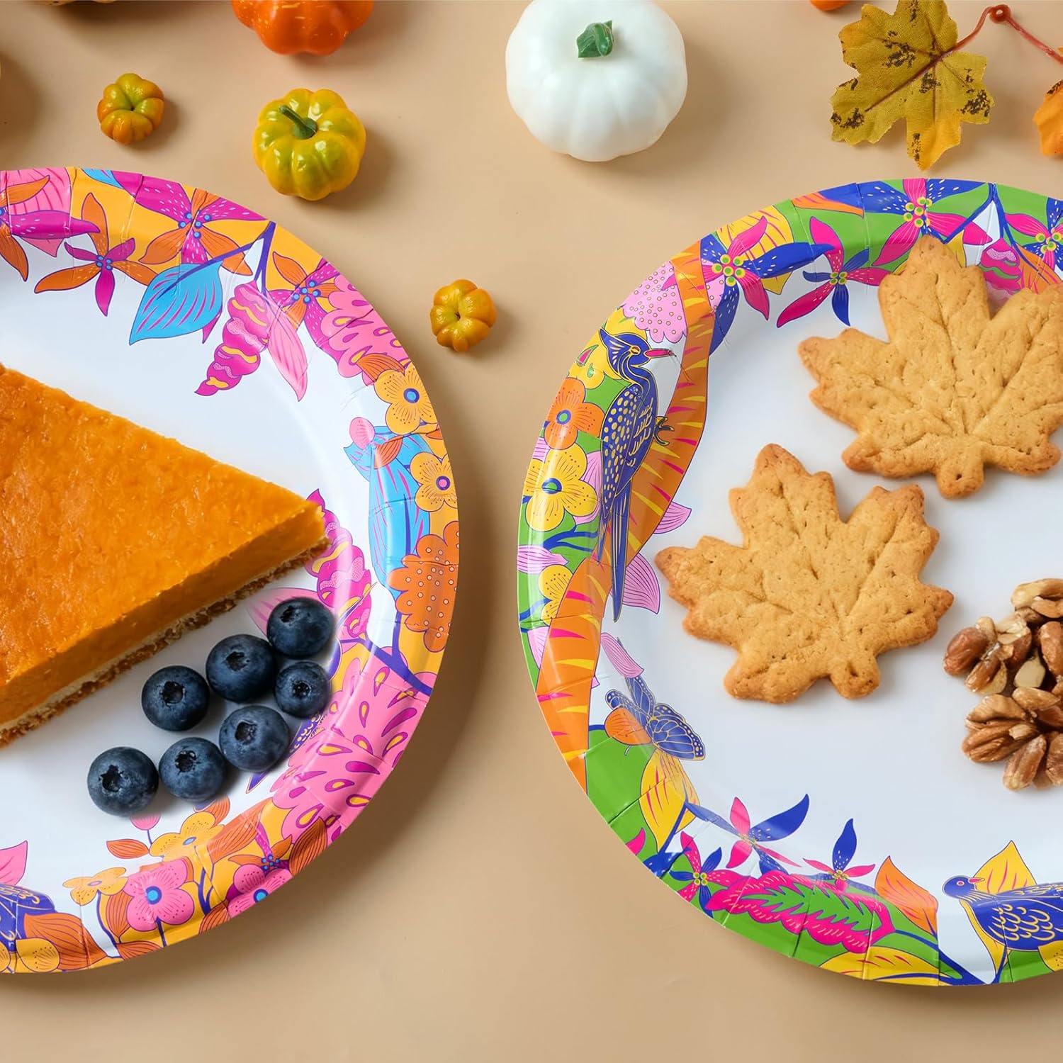 MUCHII 10 Inch Paper Plates 120 Count, Elegant Floral Bird Design Disposable Floral Plates for Wedding, Party, Dinner, Holiday - 4 Vintage Colors (30 Each)