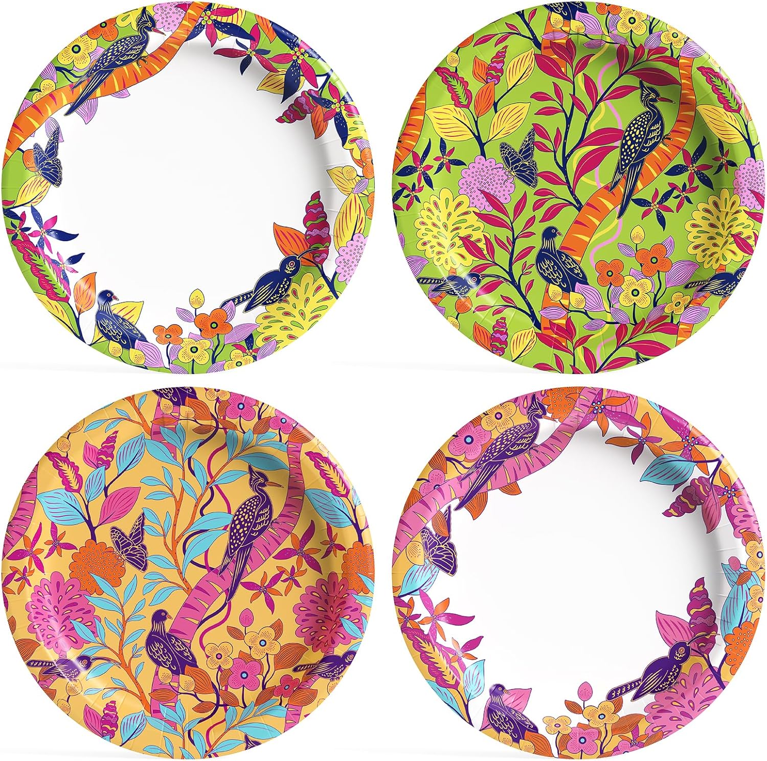 - Elegant Design: This set of disposable paper plates features 4 unique patterns, each showcasing delicate birds and blooming flowers. The sophisticated vintage art adds a touch of classic charm and elegance to any gathering