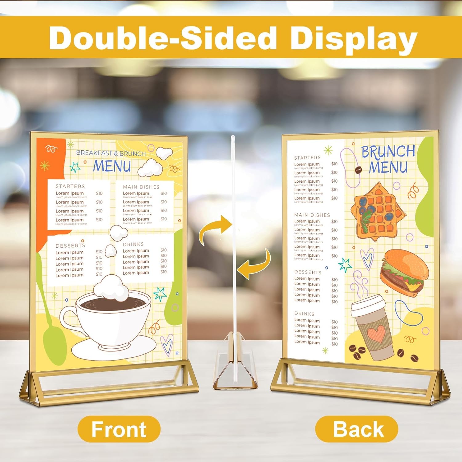 - Package Includes:8 Pack 4×6 inchesacrylic sign holder with golden border.