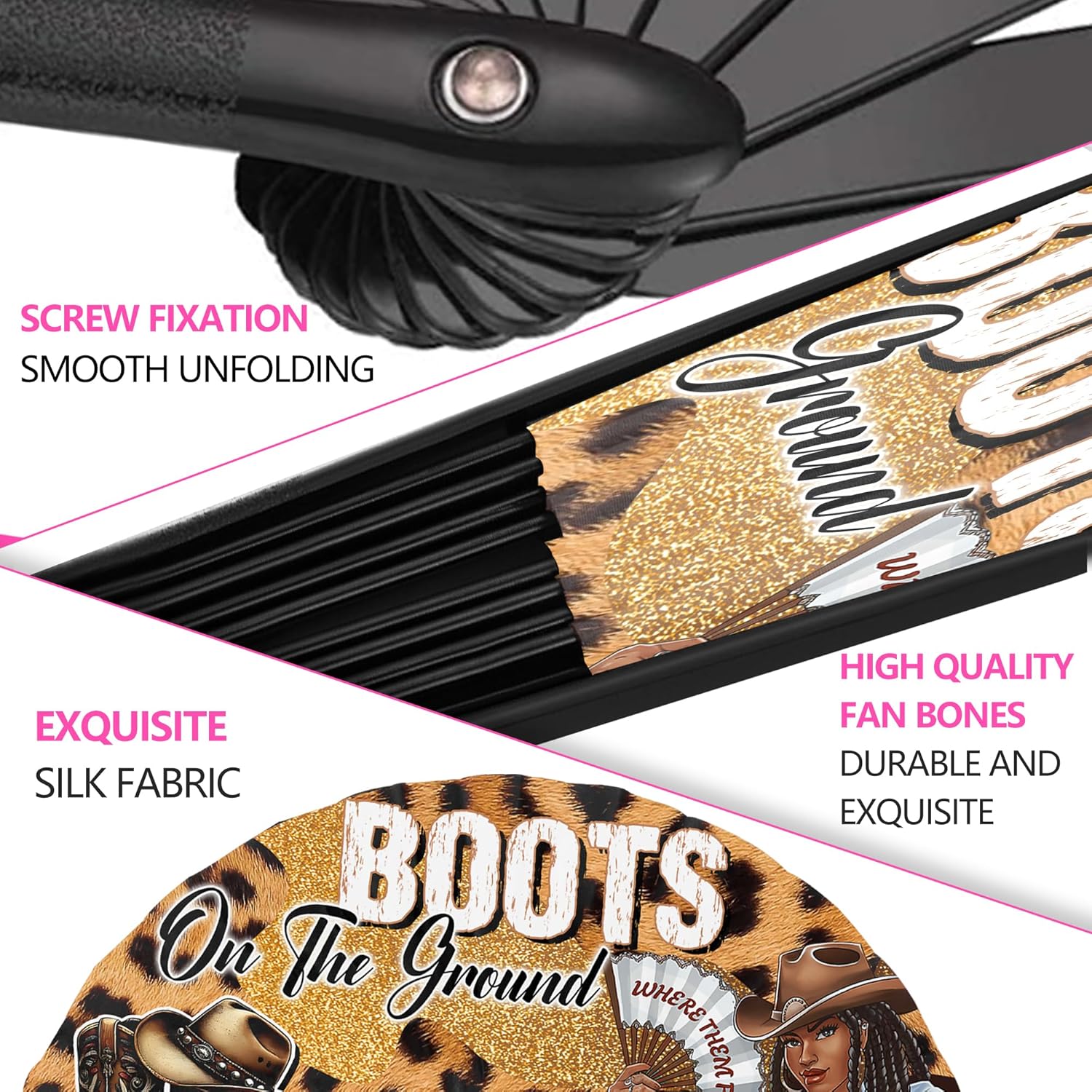- Unique Dance Design:Designed specifically for ladies, these Boots On The Ground Hand Fan and Where Them Fans At Folding Fans are the perfect accessory for line dancing. With 9 unique styles to choose from, each fan features an original pattern that will make you stand out at any party or dance event.