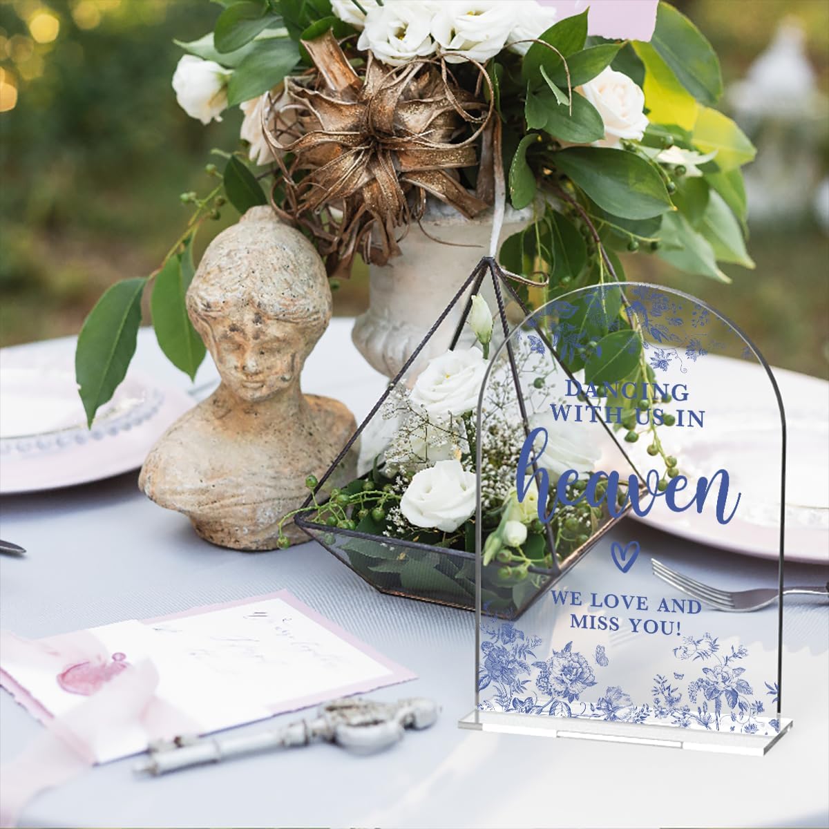 Acrylic Wedding Signs, Dusty Blue Wedding Decor, Blue Weddings Decor, Modern Calligraphy Arch Acrylic Table Top Sign for Weddings Parties Dinners - Dancing With Us in Heaven (Clear)