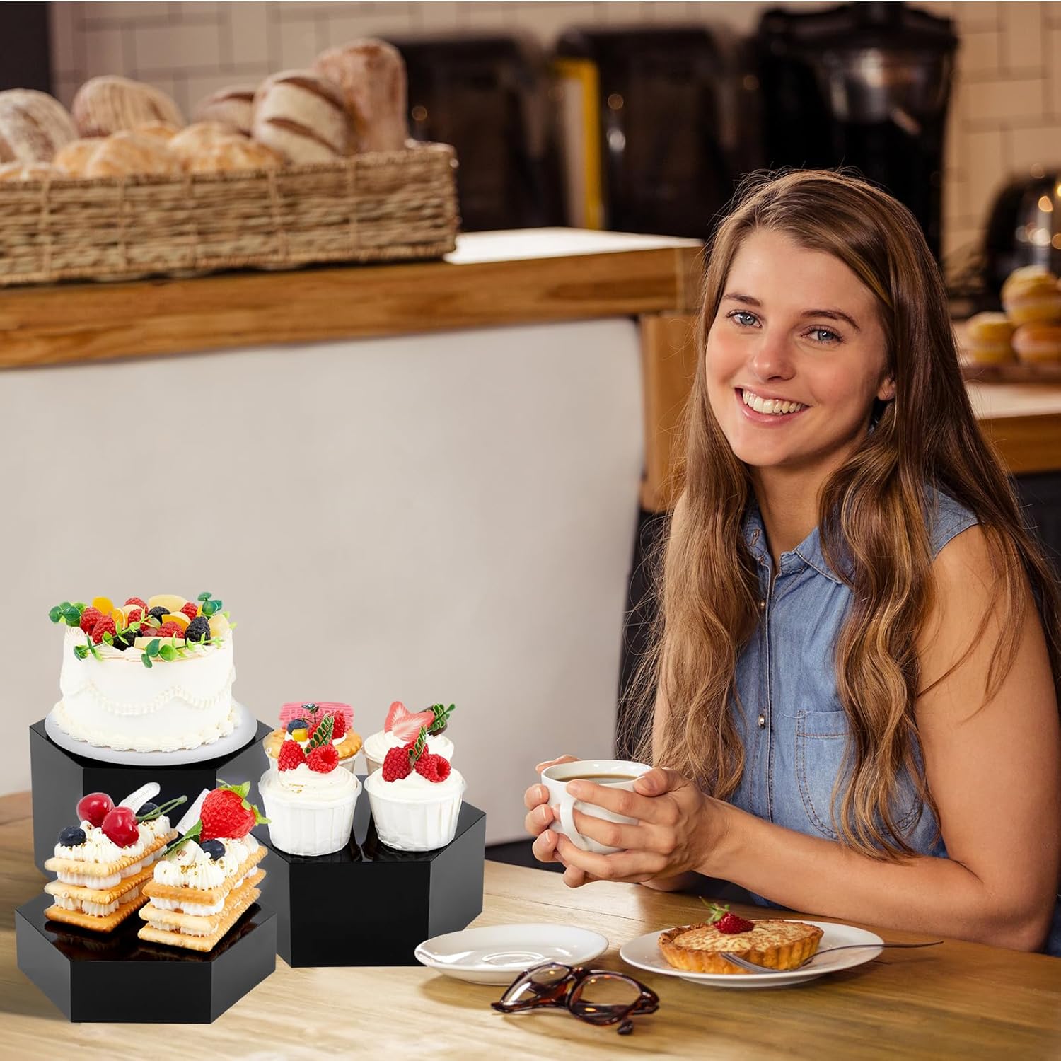 Leinuosen 7 Pcs Large Buffet Risers Set 6" to 12" Acrylic Display Box Catering Dessert Table Riser Food Display Decorative Stand with Hollow Bottom for Catering Supplies (Black, Hexagonal)