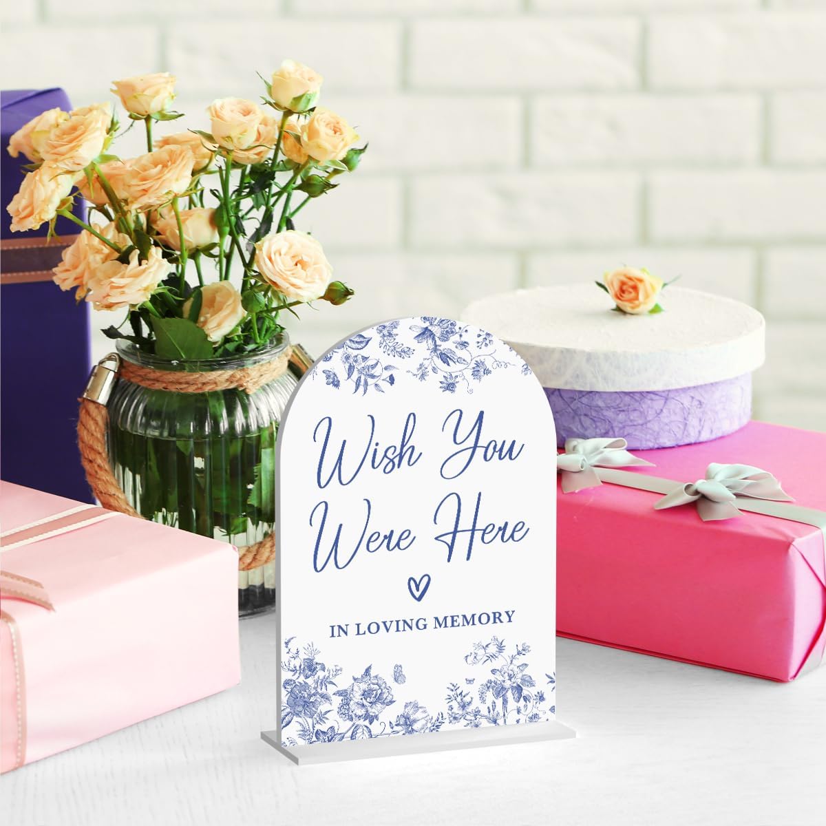 Acrylic Wedding Signs, Dusty Blue Wedding Decor, Blue Weddings Decor, Wish You Were Here Signs for Reception, Modern Calligraphy Arch Acrylic Table Top Sign for Weddings Parties Dinners (White)