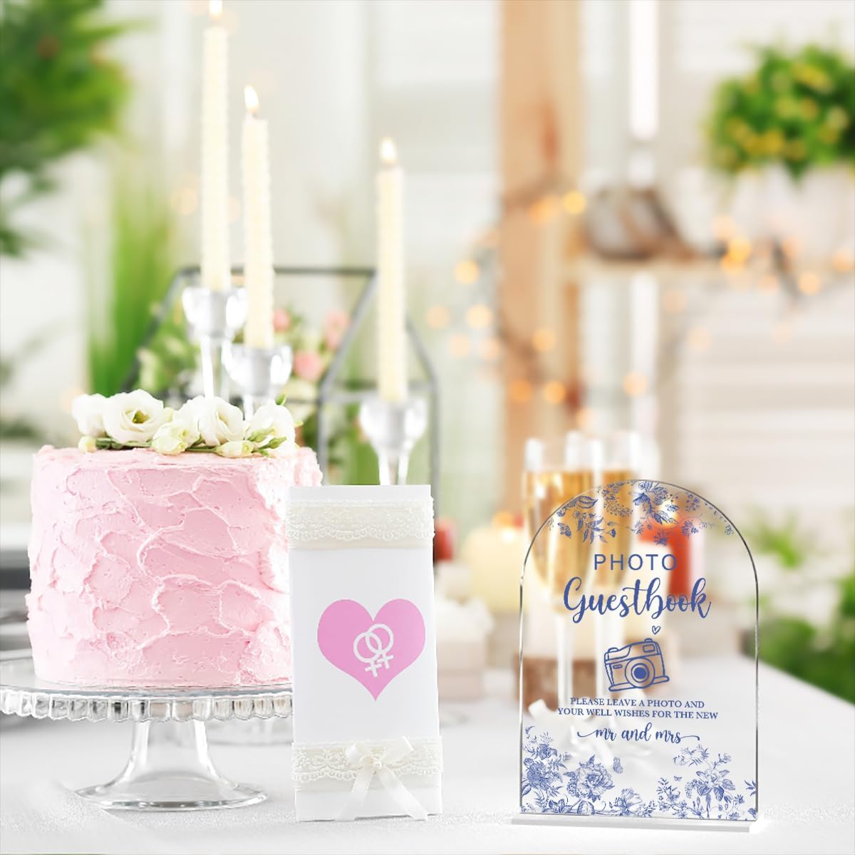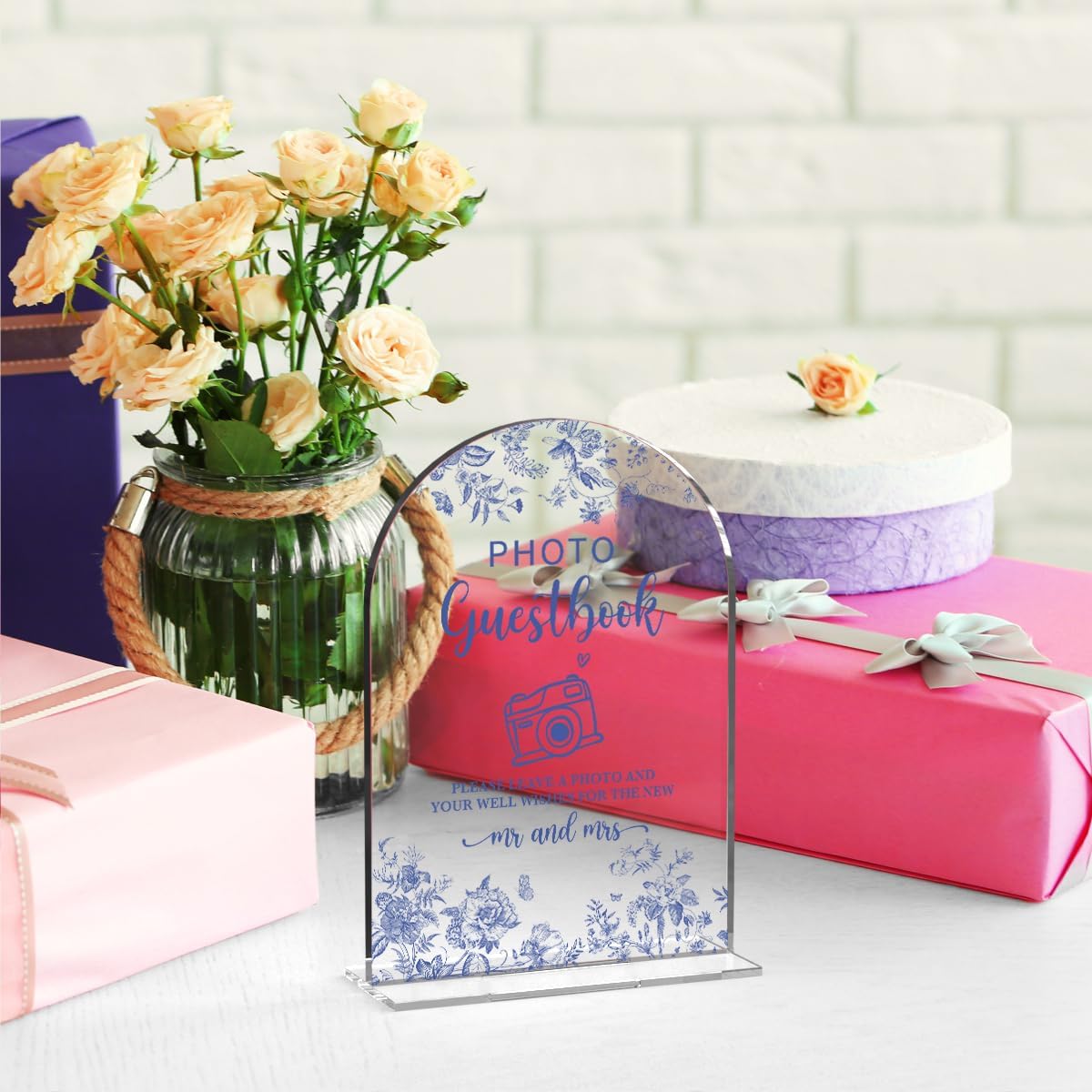 Acrylic Wedding Signs, Dusty Blue Wedding Decor, Blue Weddings Decor, Photo Guestbook Signs for Reception, Modern Calligraphy Arch Acrylic Table Top Sign for Weddings Parties Dinners (Clear)