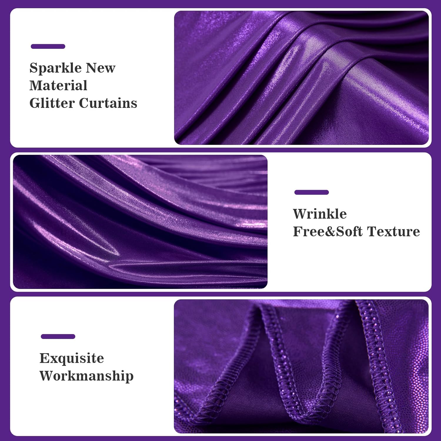 - New Glitter Purple Backdrop Fabric: Made from high-quality soft polyester and glitter, thicker and more durable than standard sequin backdrops, adding charm and sparkle to your parties.