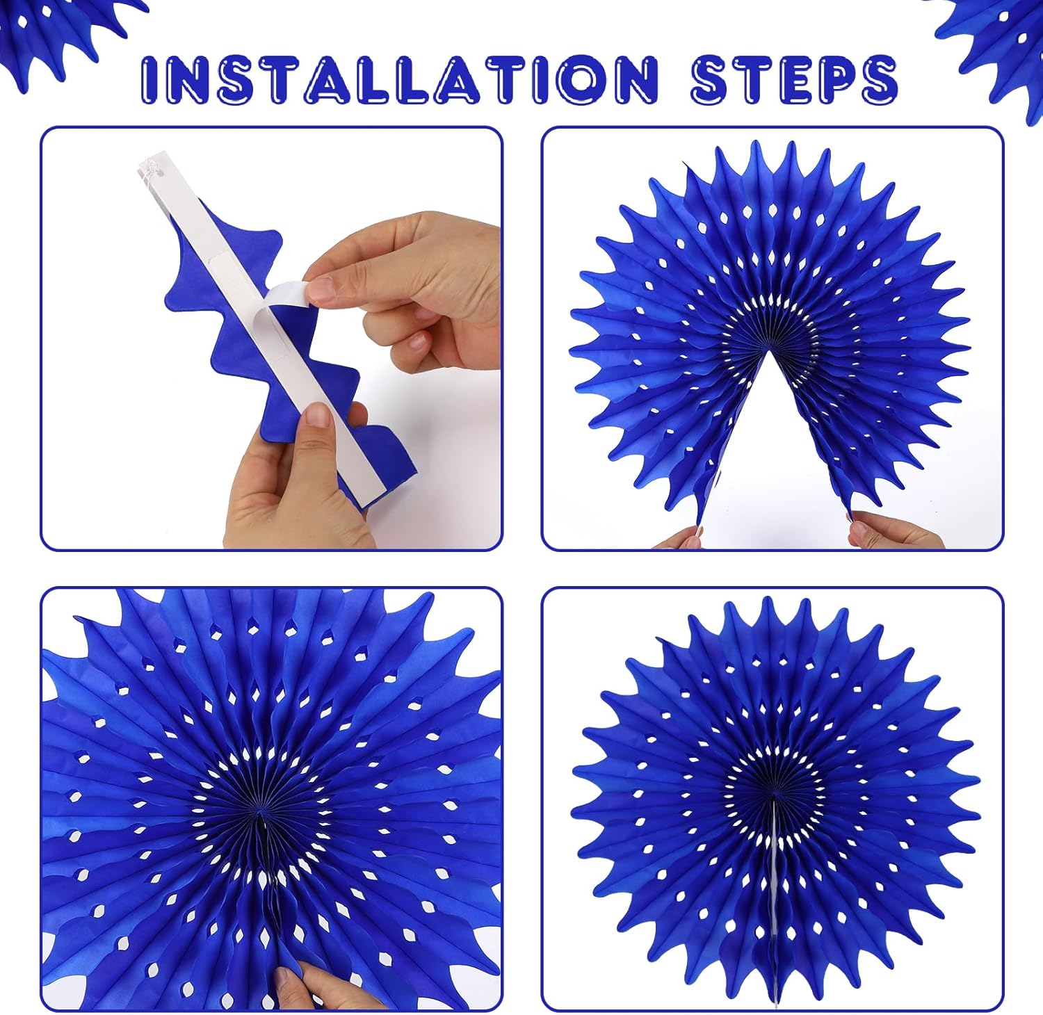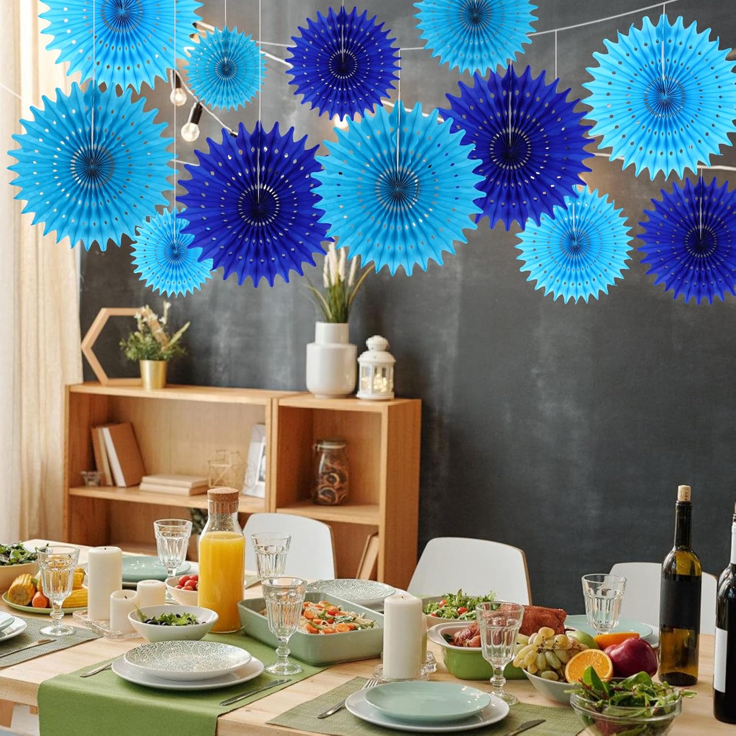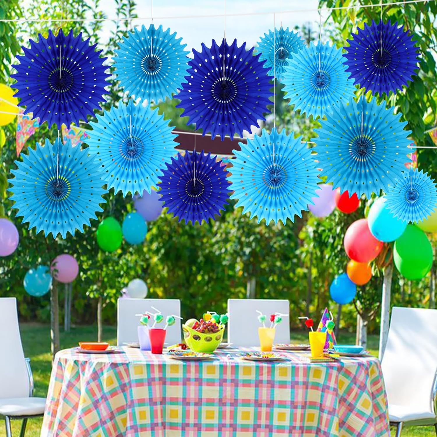 BestoFun 12PCS Paper Fans Blue Party Decorations Tissue Paper Flowers Decorations for Girl Groovy Birthday Baby Shower Wedding Bachelorette Room Wall Hanging Décor