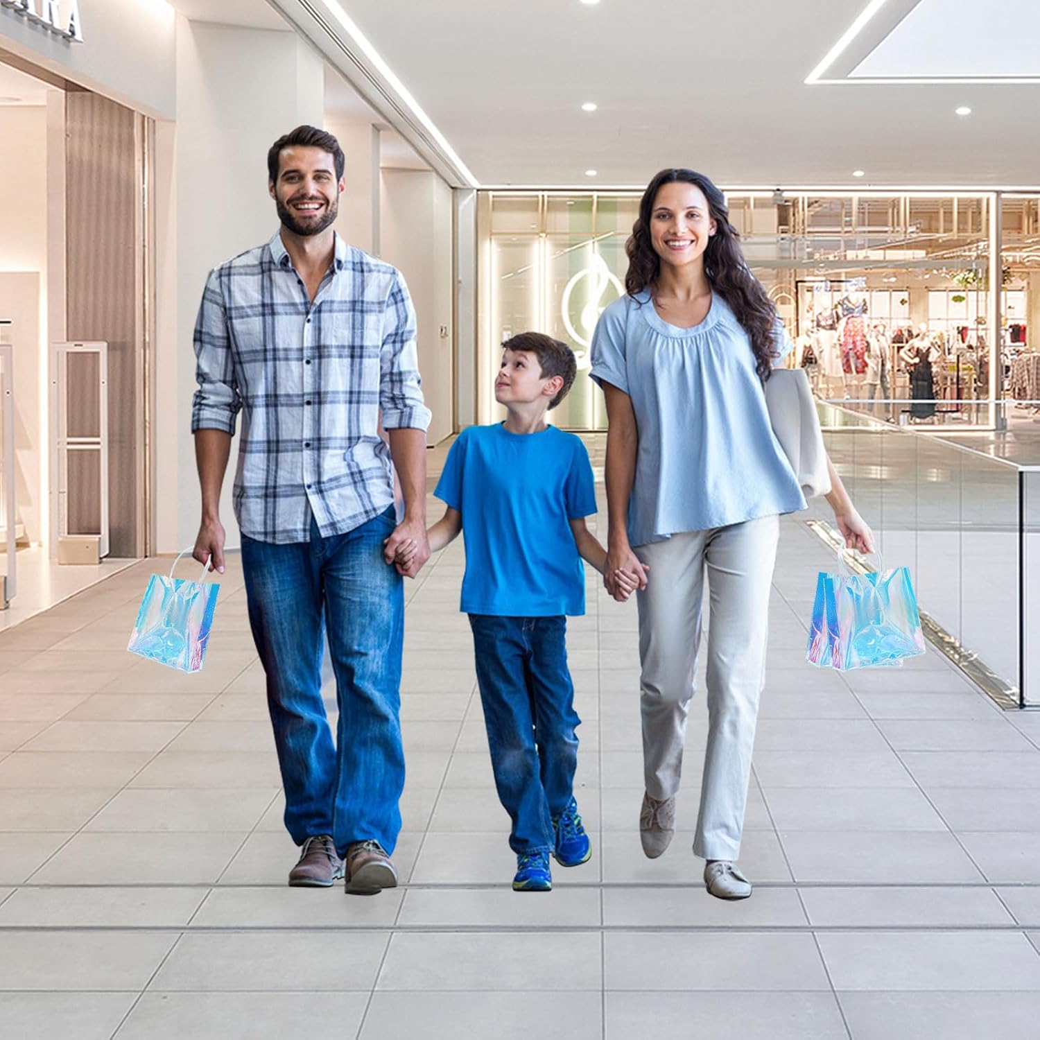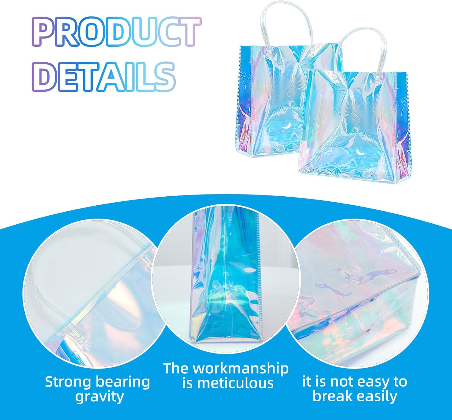 Vankcp 16 PCS Mini Party Favor Bags, 5.9×6.3inch Clear PVC Gift Bags with Handles, Iridescent Clear Bags, Holographic Gifts Bag for Birthday Weddings Party Favors Gifts