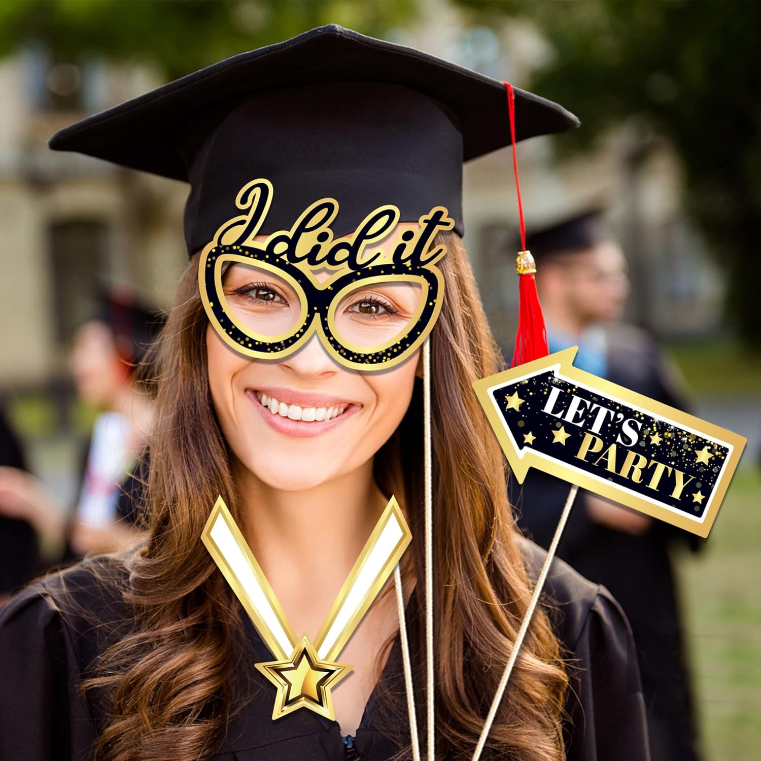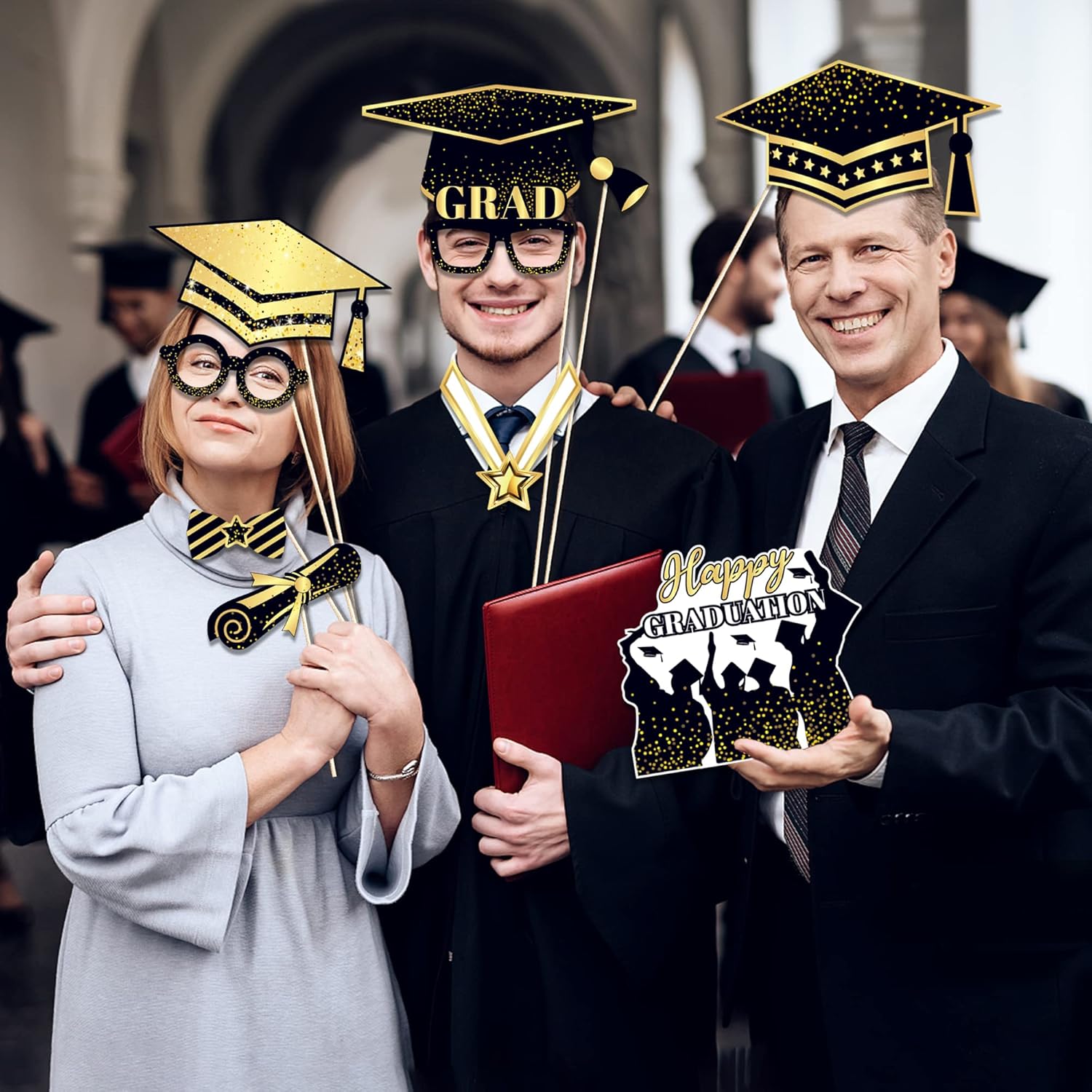 25 Pcs Black and Gold Photo Booth Props, Graduation Theme Decoration Props, Graduation Holiday Party Supplies