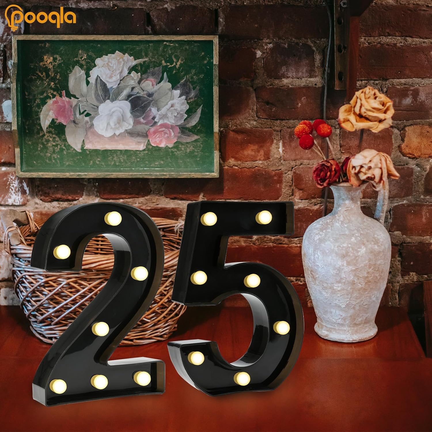 Pooqla 25th Birthday Decorations for Her Him, Black Light Up Number 25 for Party Table Decorations, 25th Birthday Gift for Men Women, Backdrop Wall Decor for 25th Wedding Anniversary Decoration