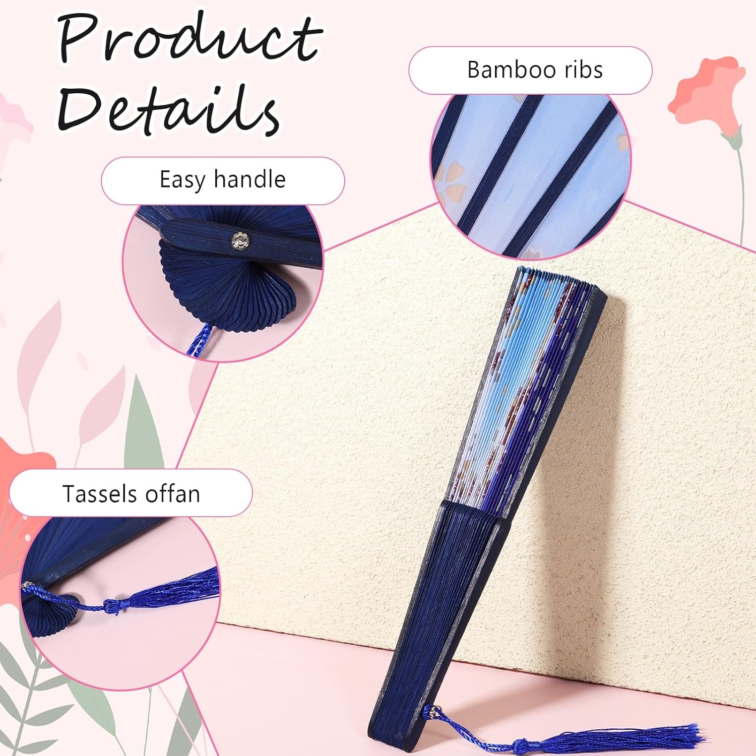 - 【Practical Gift】This set of 12 bamboo hand fans makes a thoughtful gift for friends and family. Its vintage floral design and tassels add cultural charm, perfect for keeping cool in the summer or enhancing costumes at festivals, weddings, and dance performances.