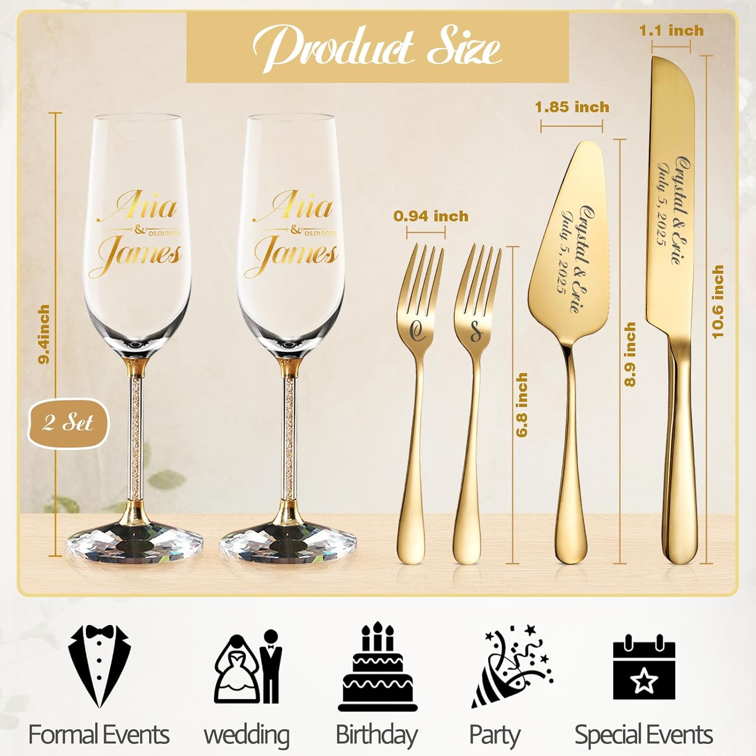 - Versatile for Multiple Occasions:Champagne flutes shine at romantic dinners, holidays & more. Cake set works for birthdays, housewarmings & gatherings. A multi-purpose keepsake extending wedding memories