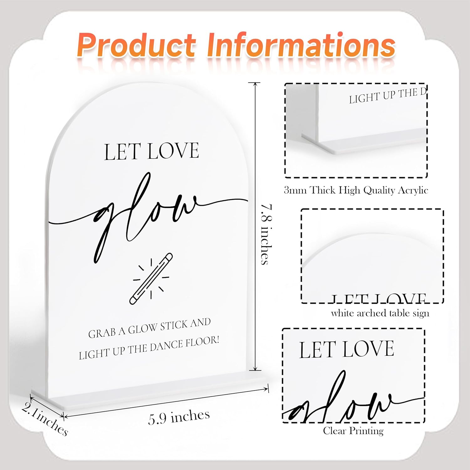 Let Love Glow Sign Wedding, White Arch Acrylic Sign, Wedding Dance Floor Props, Bridal Shower Decor, Engagement Party Decor, Centerpiece Table Decorations Party for Bride and Groom-18