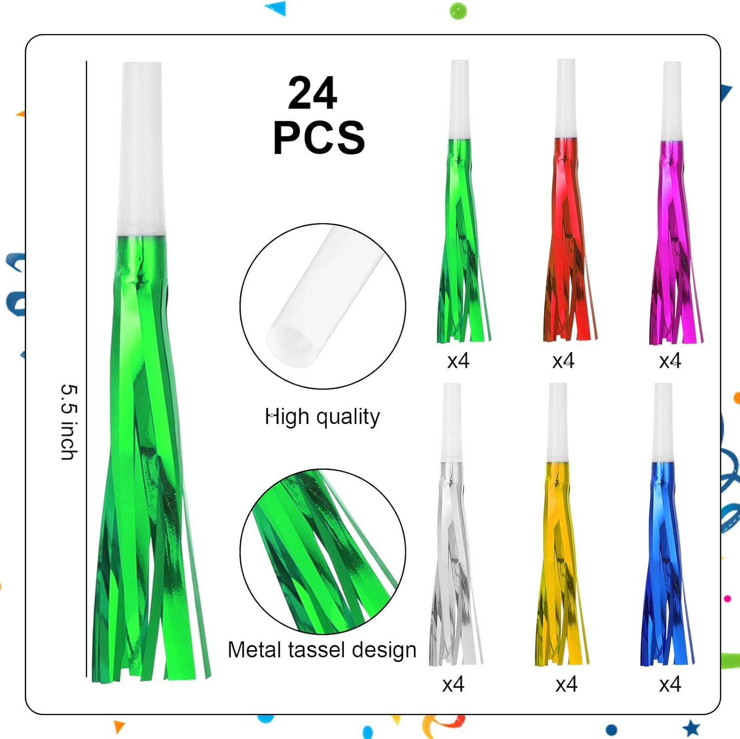 - Complete 24-Piece Set: Our party horn set includes 24 pieces of fun and festive blowers, perfect for birthdays, weddings, or graduations. These party noise makers and graduation horn blower add instant excitement to any celebration