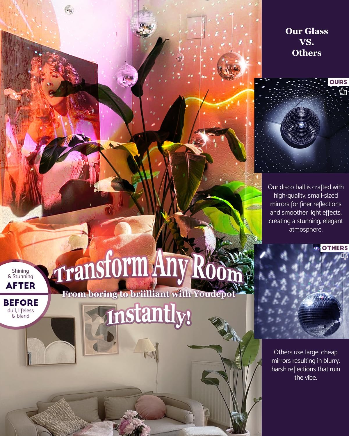 - Premium Mirror Finish for Light Reflection Each disco ball small features shiny tiles that reflect light beautifully, creating a vivid light up disco ball effect for parties or displays.