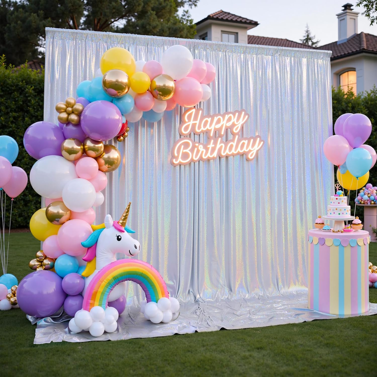 - Versatile & Reusable: Versatile and reusable, this laser silver sequin backdrop pairs effortlessly with balloons, banners, and photo props, making it perfect for birthdays, baby showers, weddings, Halloween, graduations, anniversaries, and Christmas parties