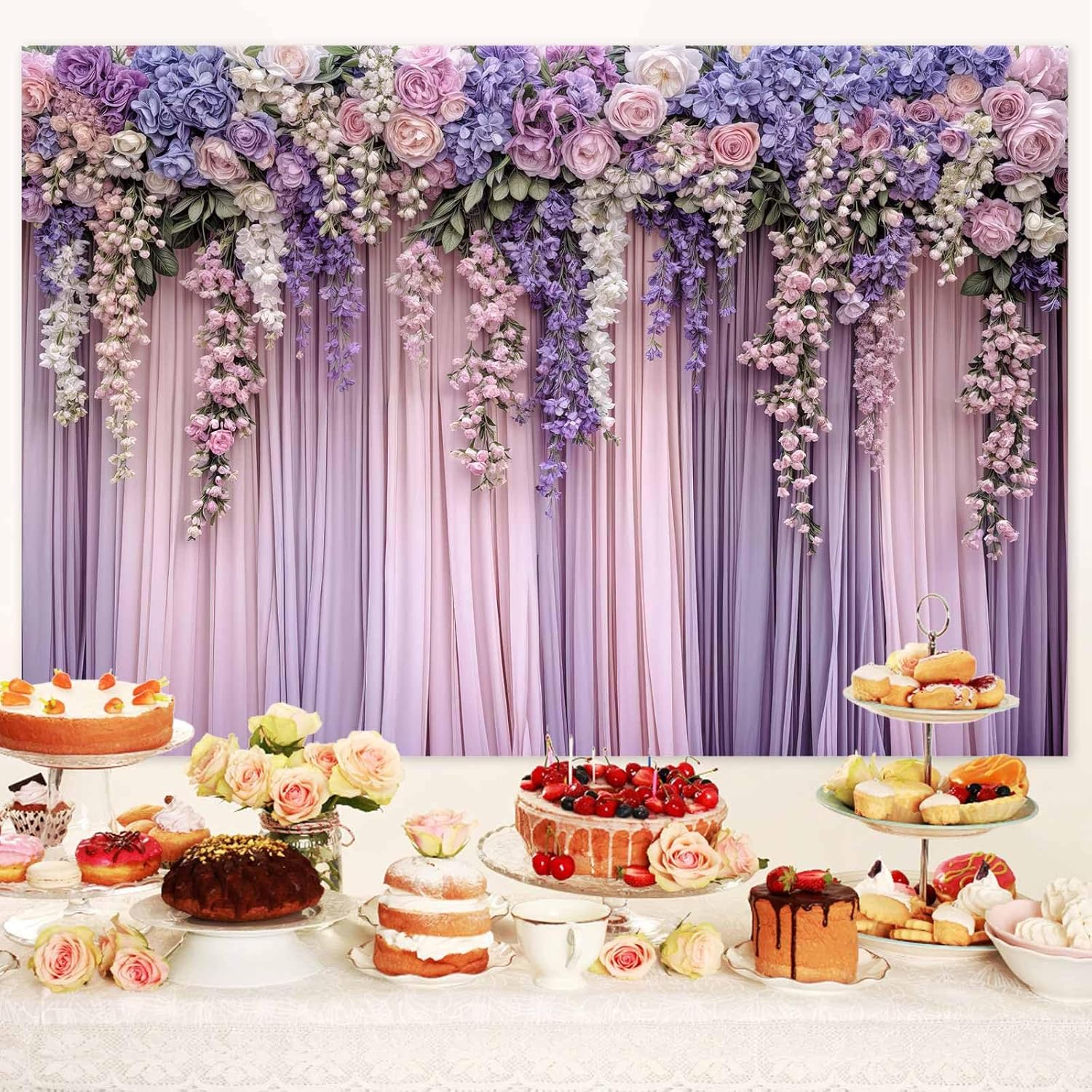 5x3ft Purple Flower Wedding Photography Backdrop Lavender Floral Wedding Bridal Photography Backdrop Anniversary Birthday Baby Shower Girl Party Banner Photo Booth Props Background Wall Decor