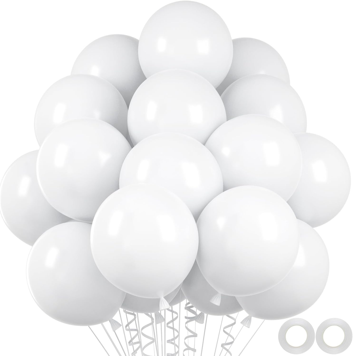 100pcs White Balloons, 12 inch White Latex Party Balloons Helium Quality for Birthday,Baby Shower,Wedding, Party Decorations (with 66ft Ribbon)