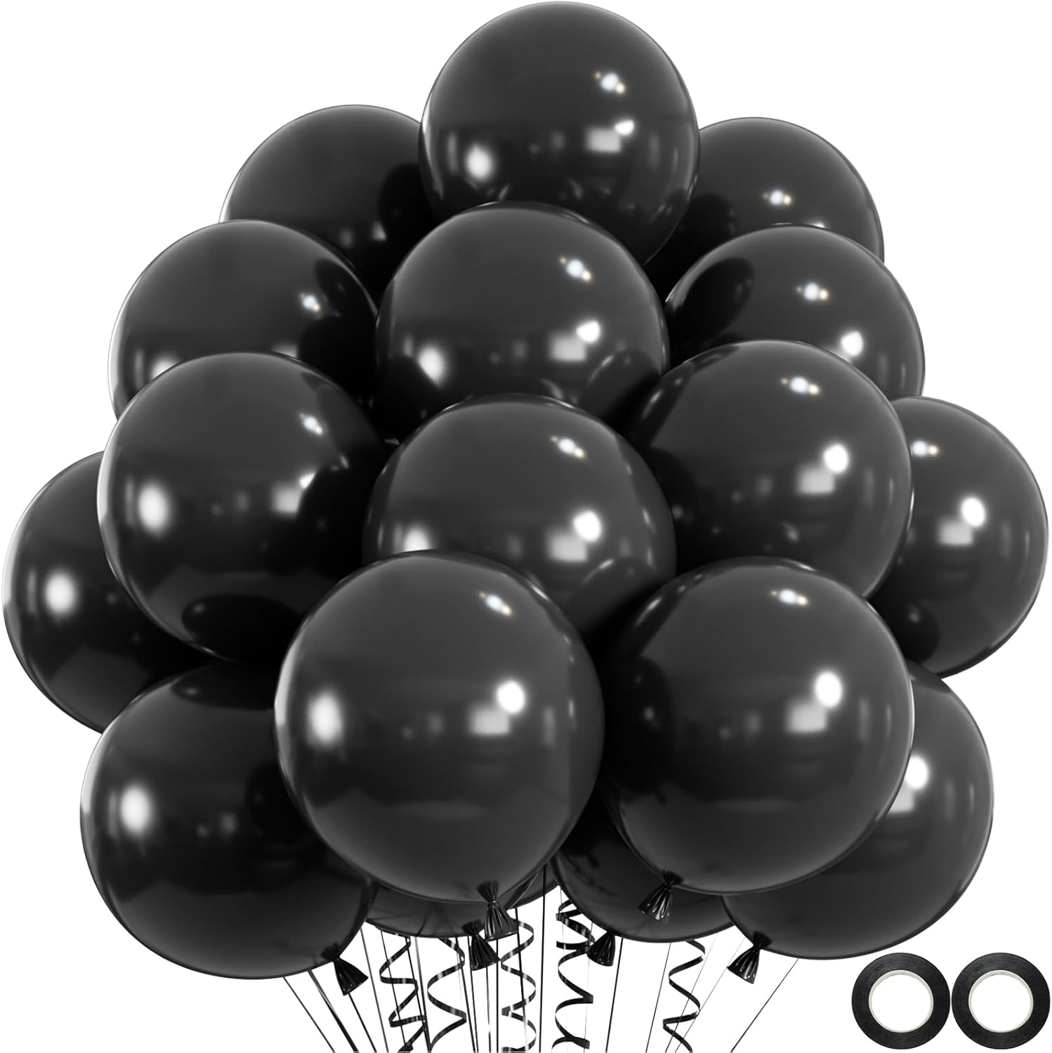 - ăWHAT YOU WILL GETă100pcs 12 inch latex party balloons in black color +2 rolls of black ribbons