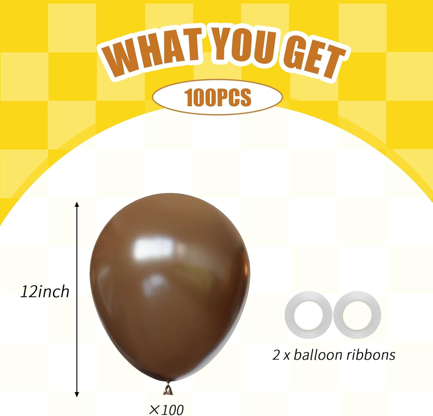 - COMPLETE DECOR KIT: 100 premium 12-inch dark brown latex balloons + 66 feet of matching ribbon. Everything needed for stunning balloon arches garlands clusters or backdrops β no extra purchases required!