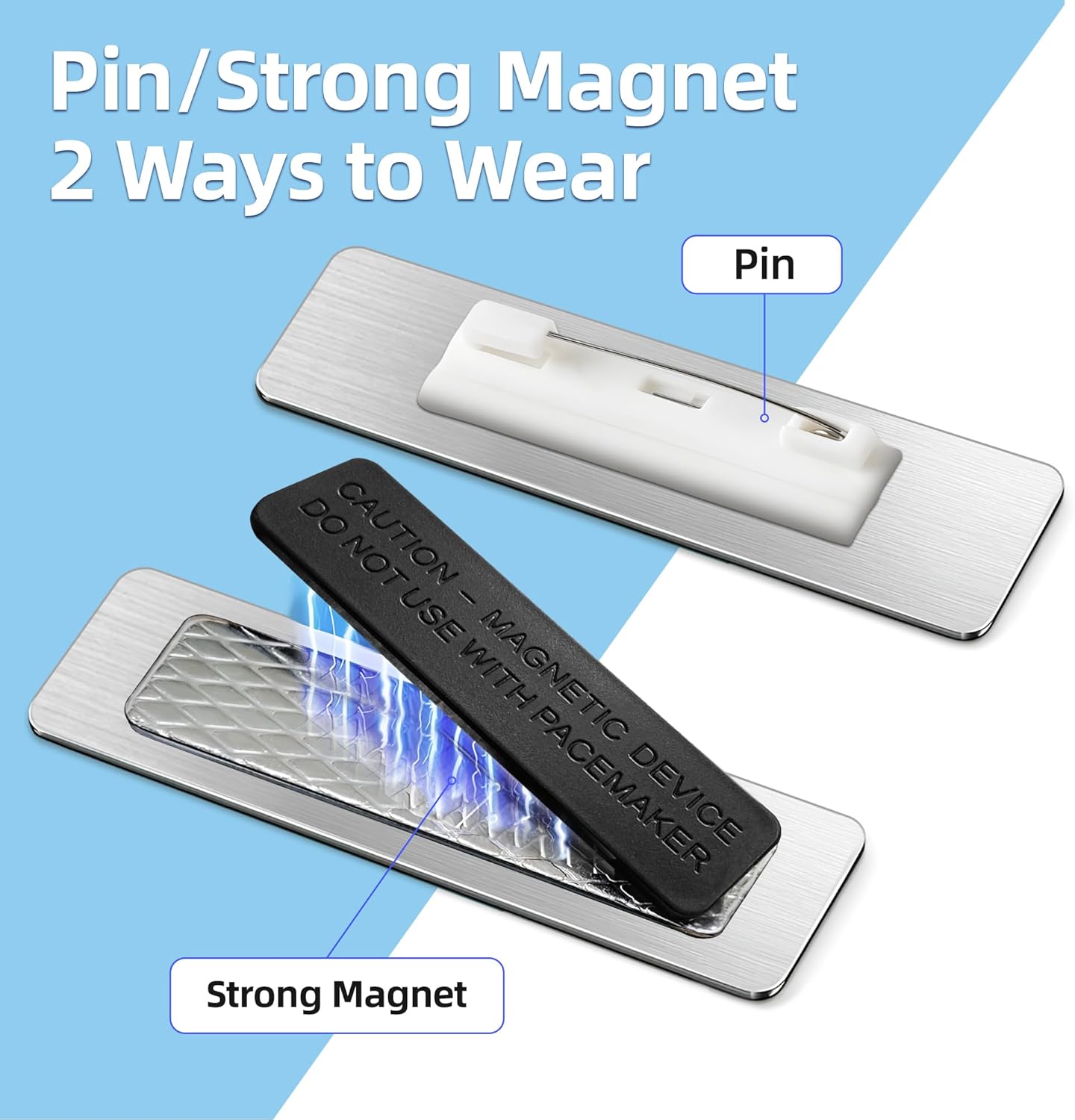 - Personalized Name Tags: Personalized name tags, can be customized to showcase your name and other desired information.NOTE:Caution-Magnetic Device Do Not Use With Pacemaker.