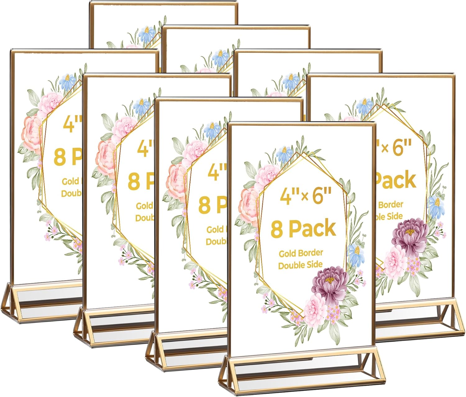 8 Pack Acrylic Sign Holder 4x6 Gold Frames, Wedding Table Number Holders Double Sided Vertical Clear Display Stand, Picture Holders for Tables, Menus, Flyers, Party and Office Decor