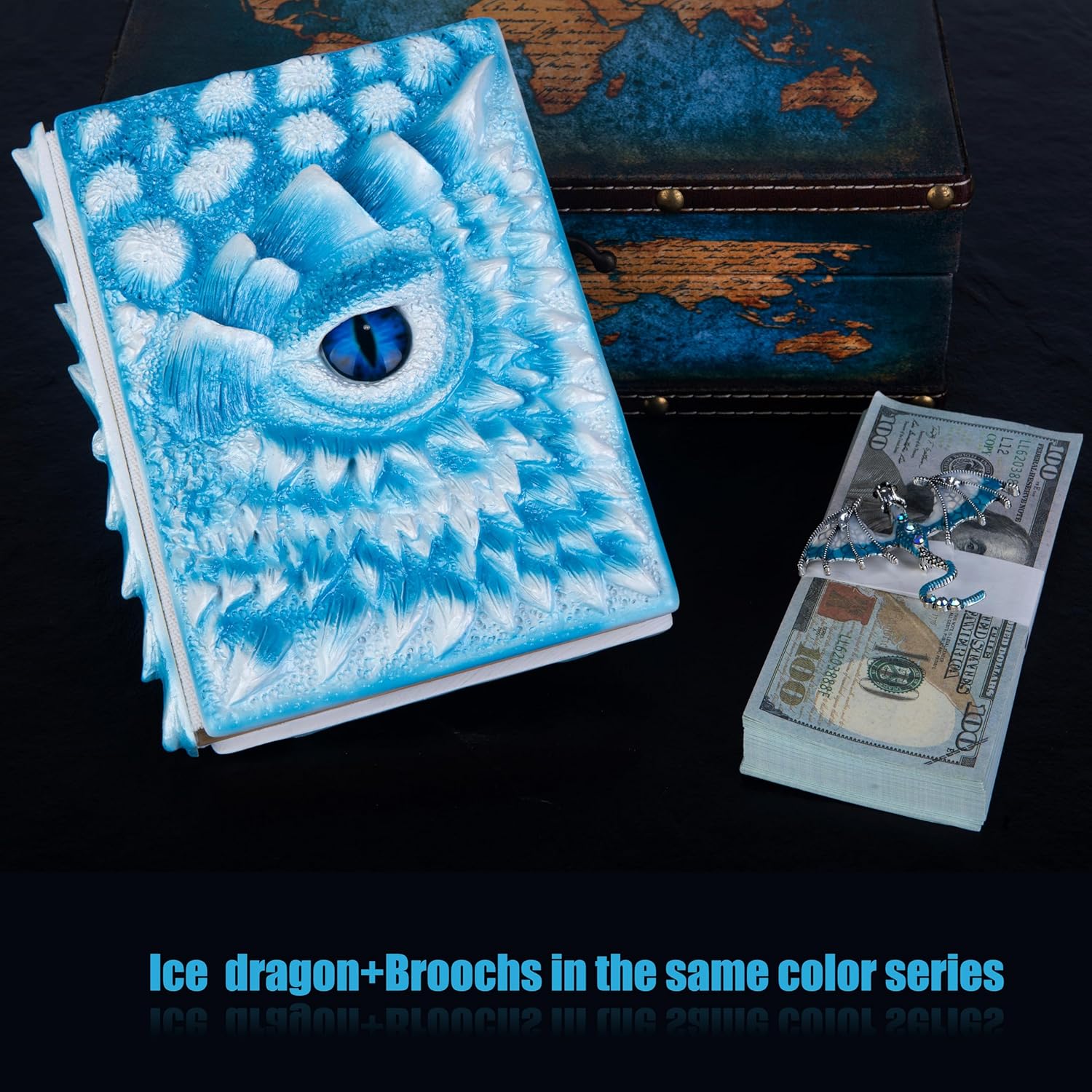 3D Dragon Eye Embossed Journal,Resin Engraving Notebook,Dnd notebook for Dragon Lovers ,Blank Paper,Hardcover Travel Notepad for Writing,Sketchbook,Collection,Gift,Decoration A4 and A5 Size (A5-Ice dragon with brooch)